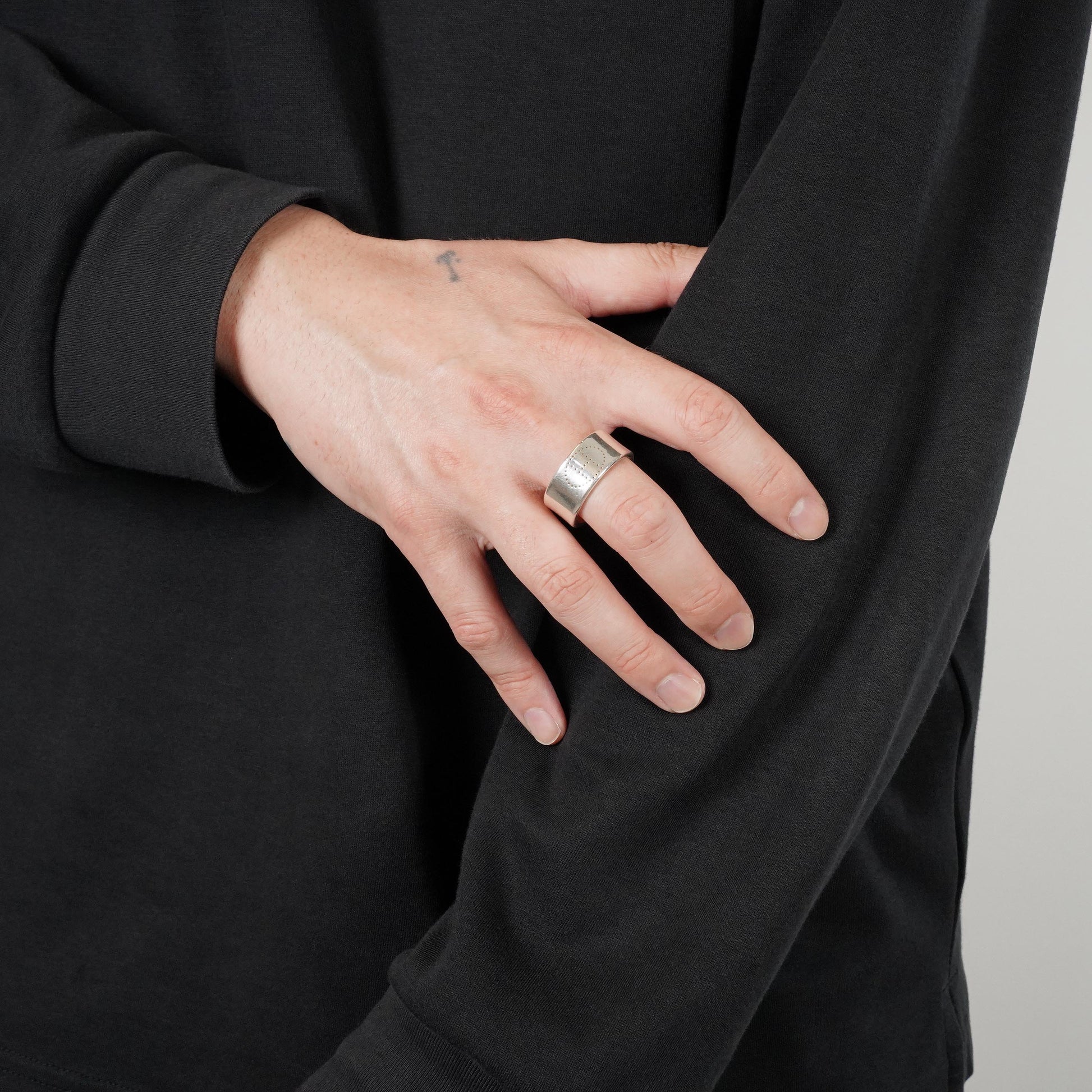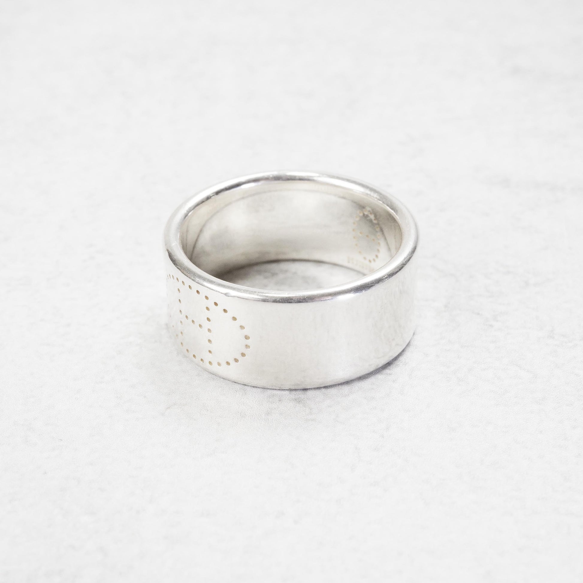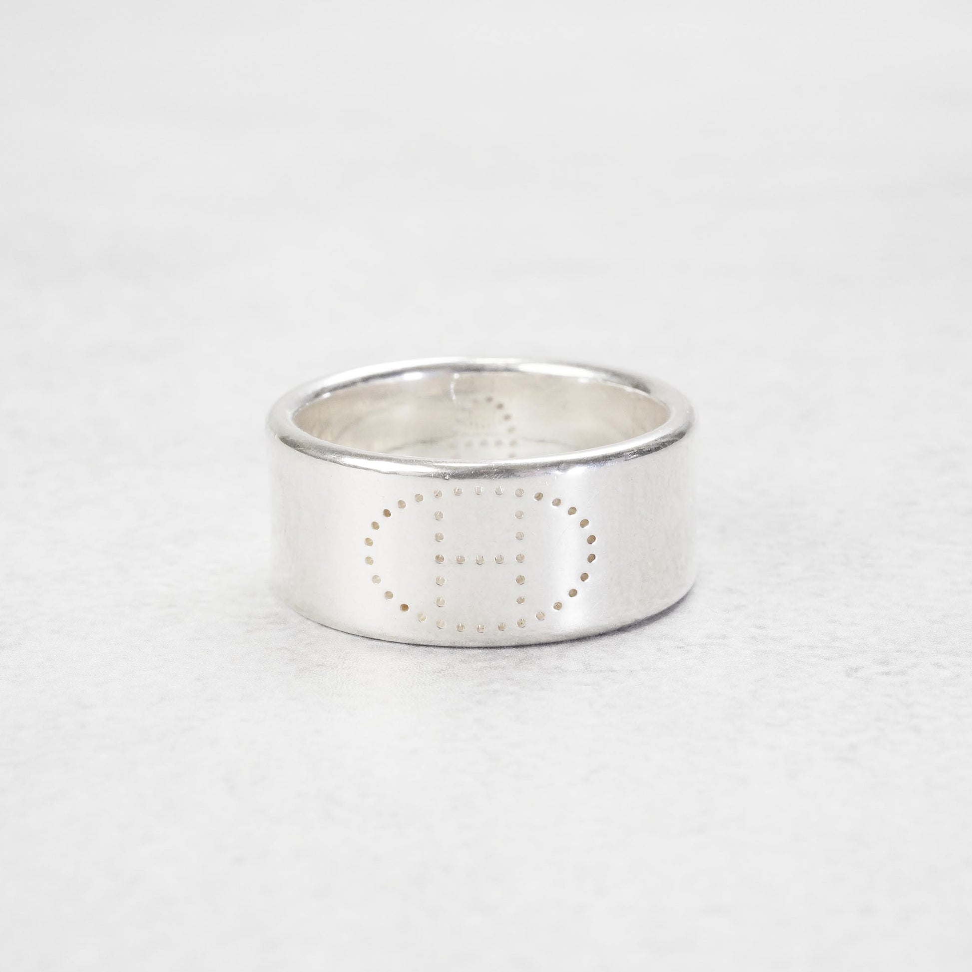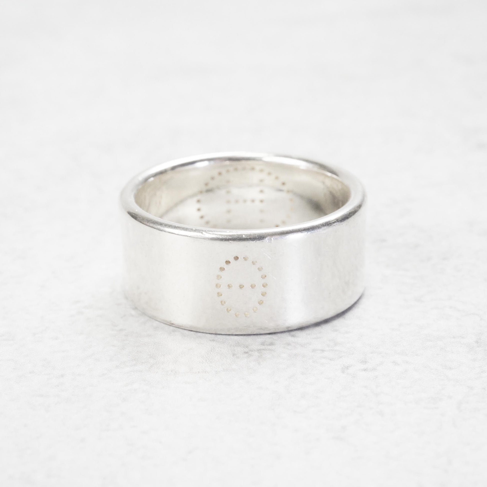 シンプルながらも、パンチングでHロゴがデザインされたリング。エルメスのリングの中では特に大きいサイズで珍しい66号サイズです。