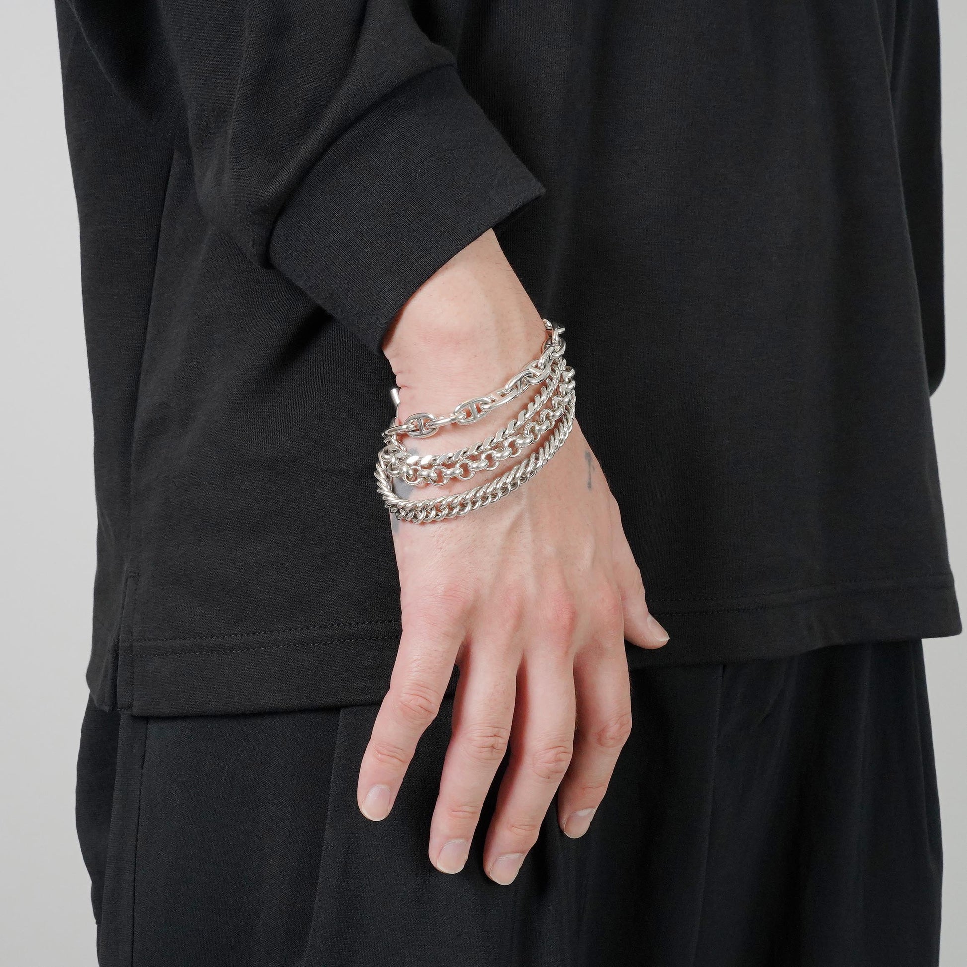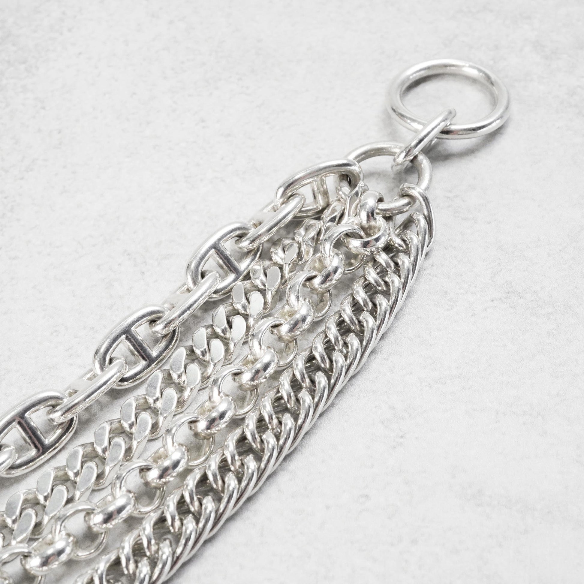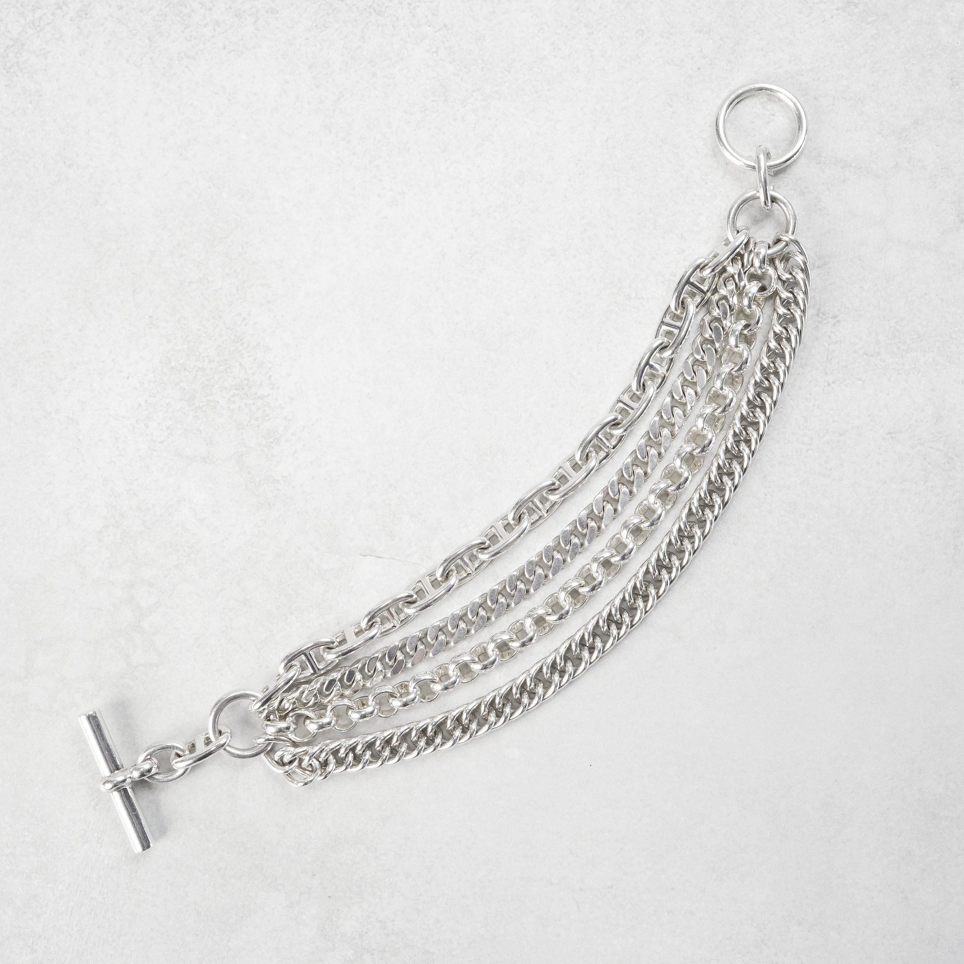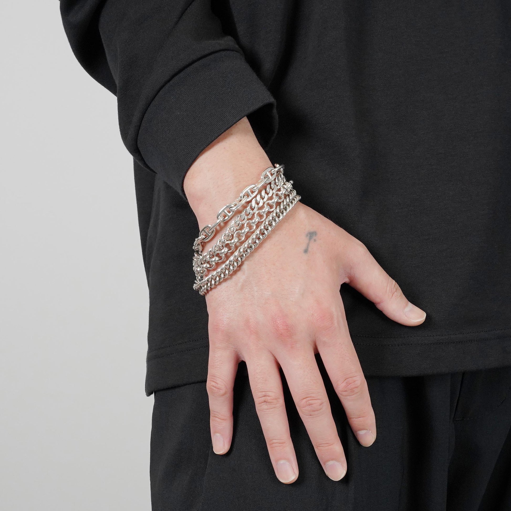 異なる4種類のチェーンで構成されたブレスレット。一本一本は細身なチェーンで、各チェーンの長さは全て異なるので、着用時に手にしっかり沿うように計算されています。