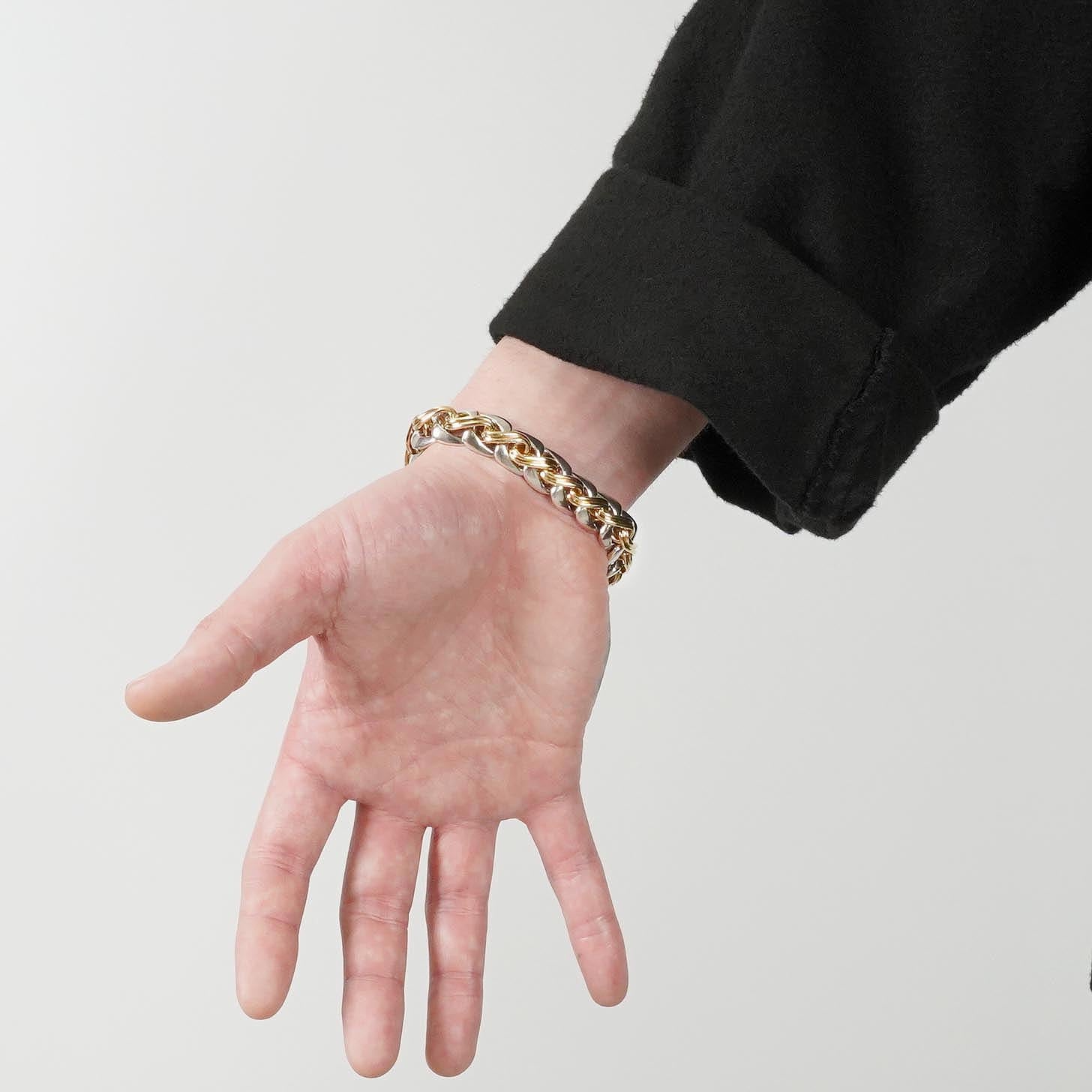 オトムにはGMサイズやデザイン違いのモデルも存在しますが、こちらは珍しいMMサイズのイエローゴールドとのコンビモデルで、主張もありつつ程よいボリューム感を持ち、シルバーリングともゴールドリングとも合わせやすい、優秀な一本です。