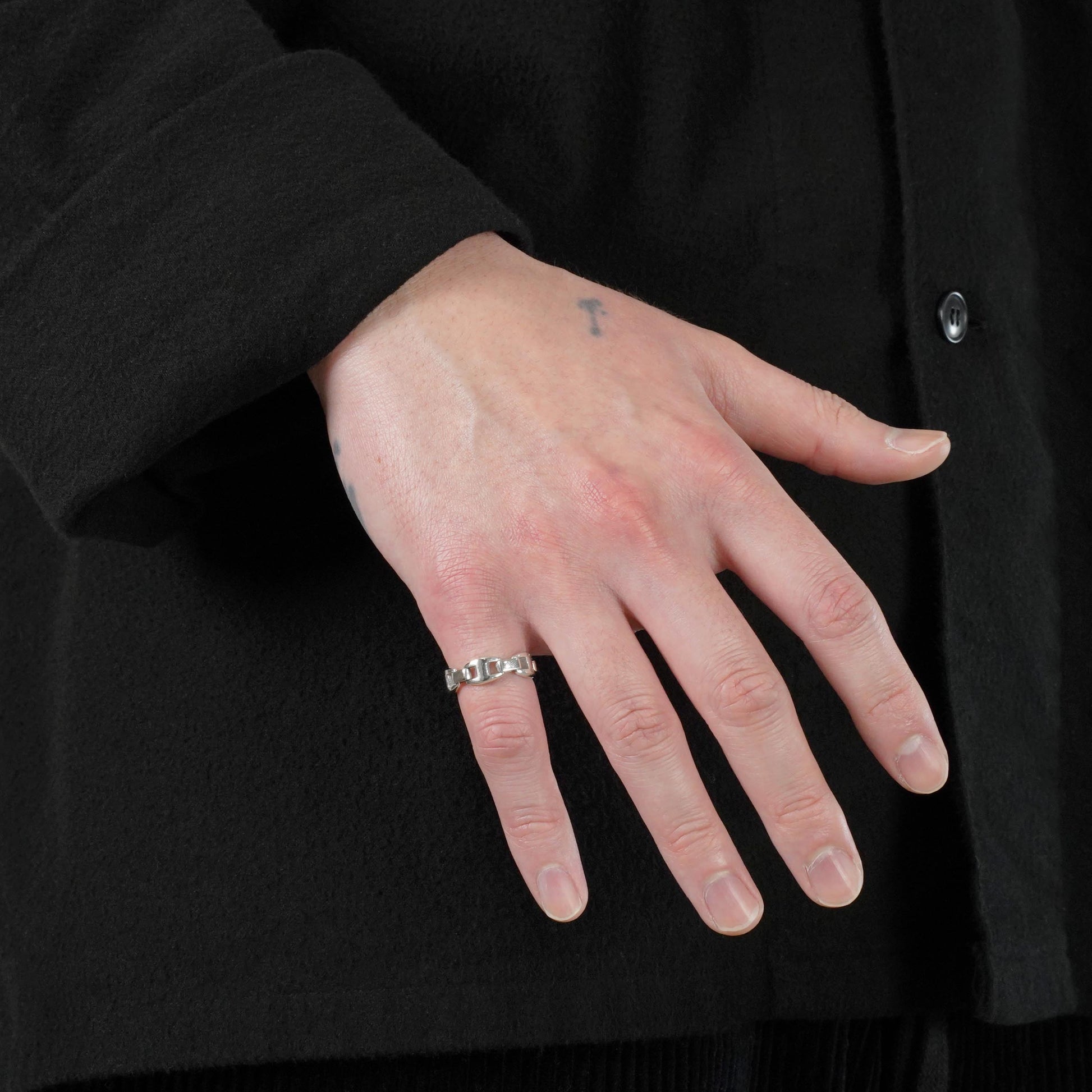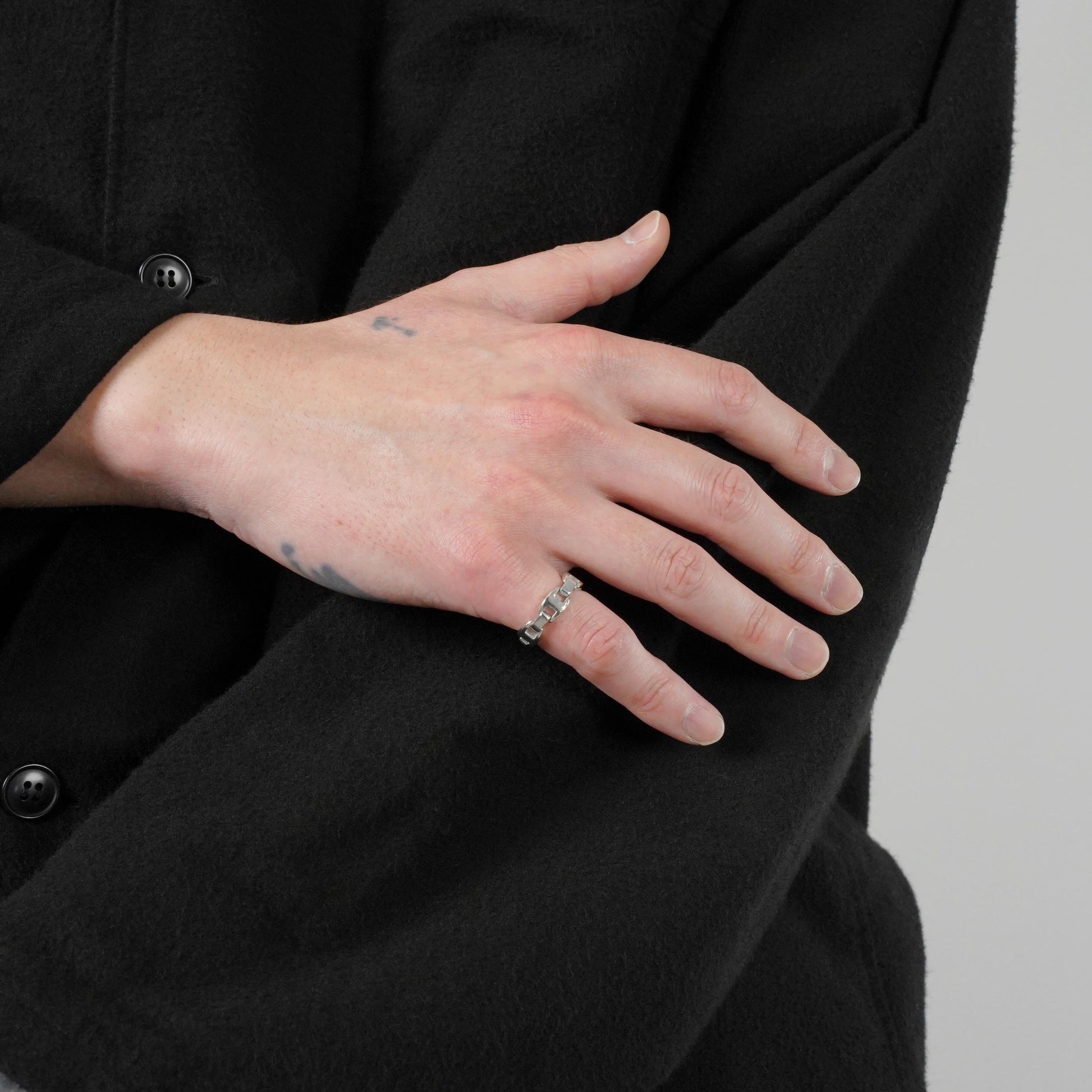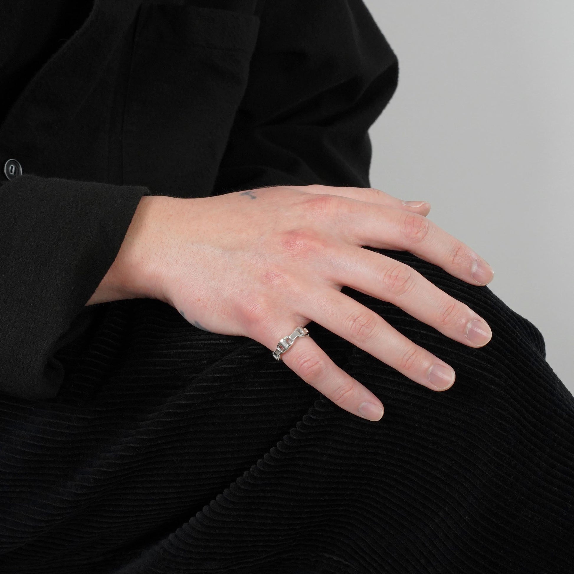 シェーヌダンクルのコマをよりモダンにしたようなデザインのカシオペアリング。2000年代のモデルでホワイトゴールド製。コマは固定されていなく可動式のため、着用感の良さも特長です。