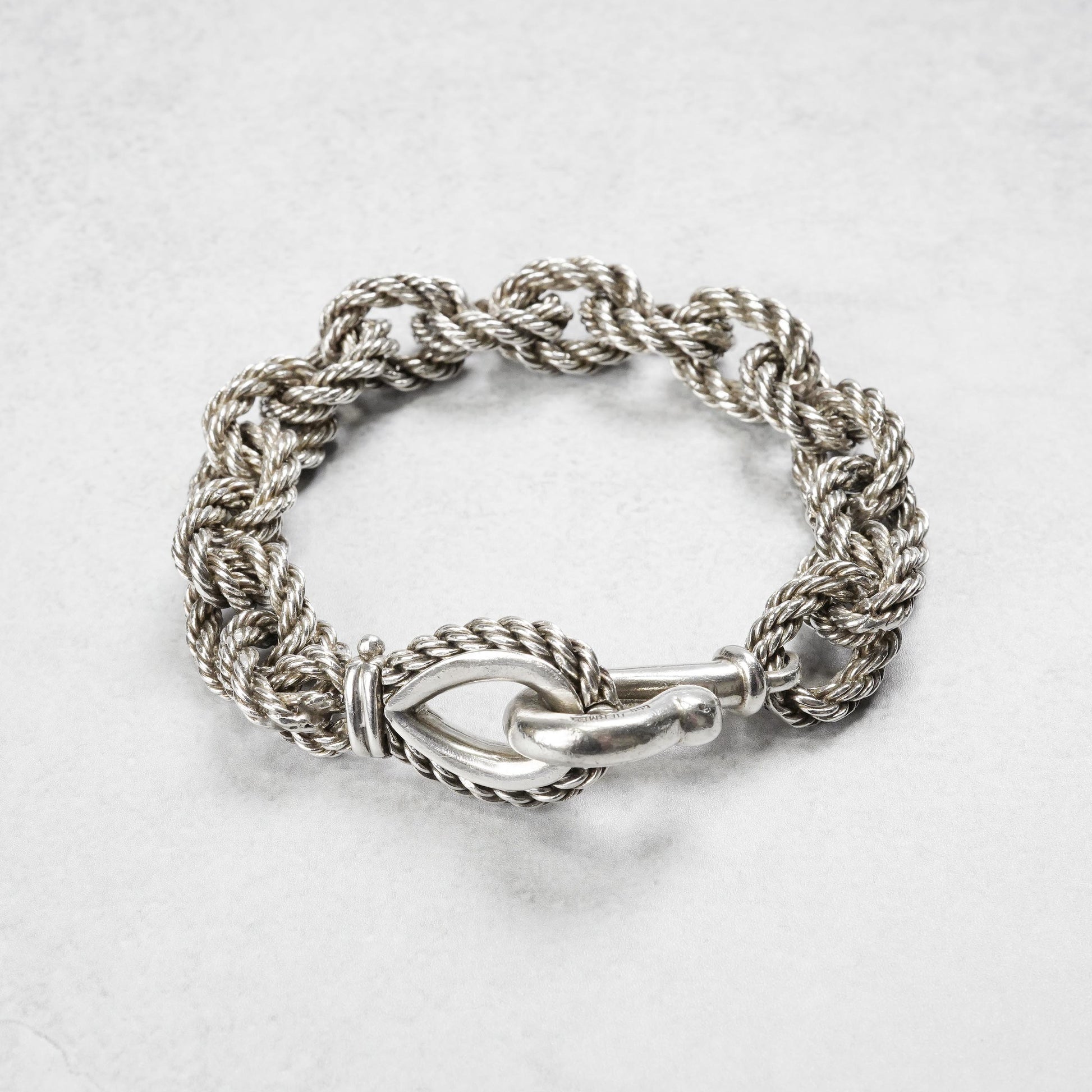 カドリーユは、ロープのような造形が綿密に施されたコマとフックのモチーフが用いられた、エルメスのヴィンテージジュエリー特有の非常に手の込んだモデルです。