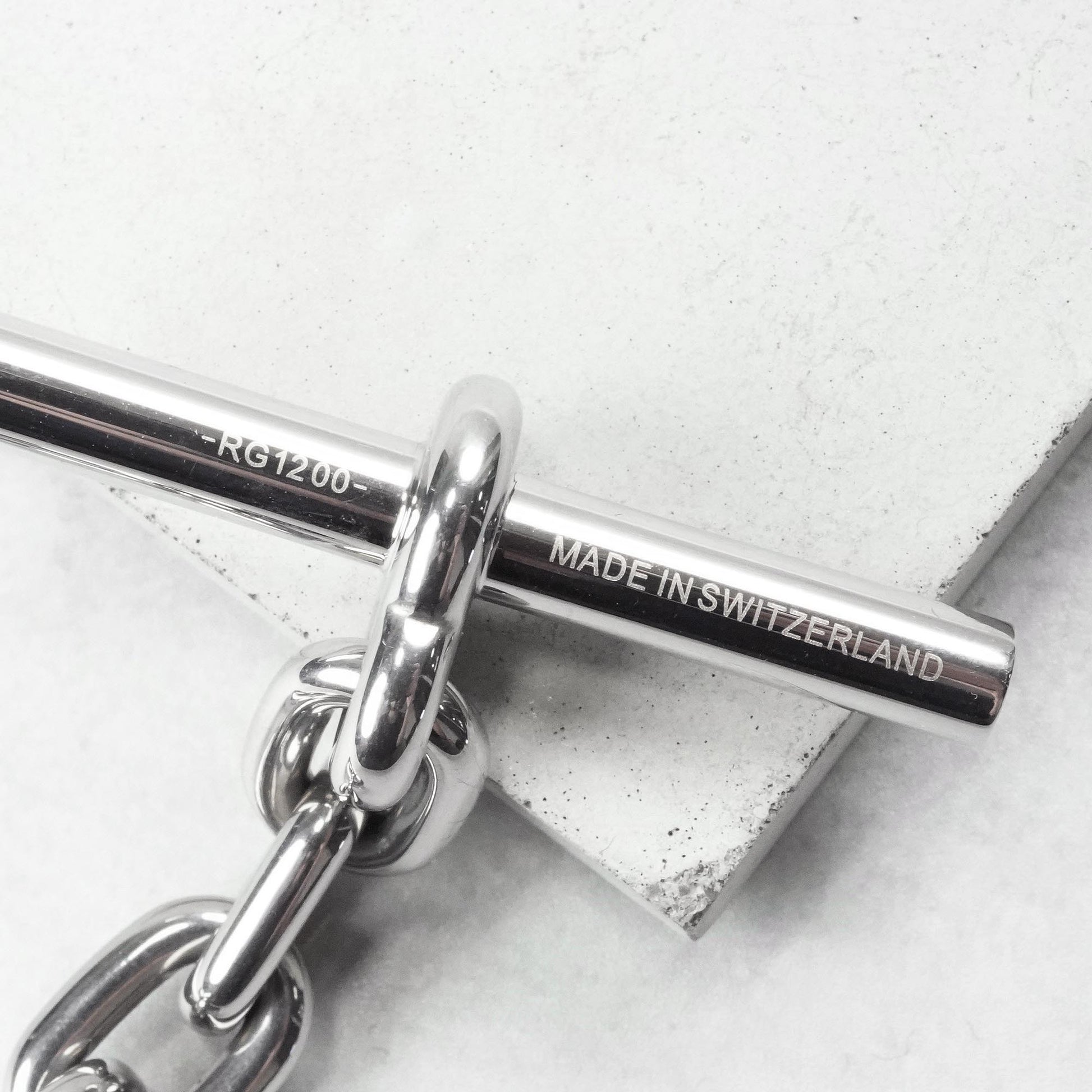2年ほど前に販売されていた、ステンレススティール製のキーリングです。ヴィンテージのシルバー製モデルよりもカラビナ自体は一回り大きなサイズ感で、モチーフの部分は取り外してカラビナ部分のみの使用も可能。スイス製。