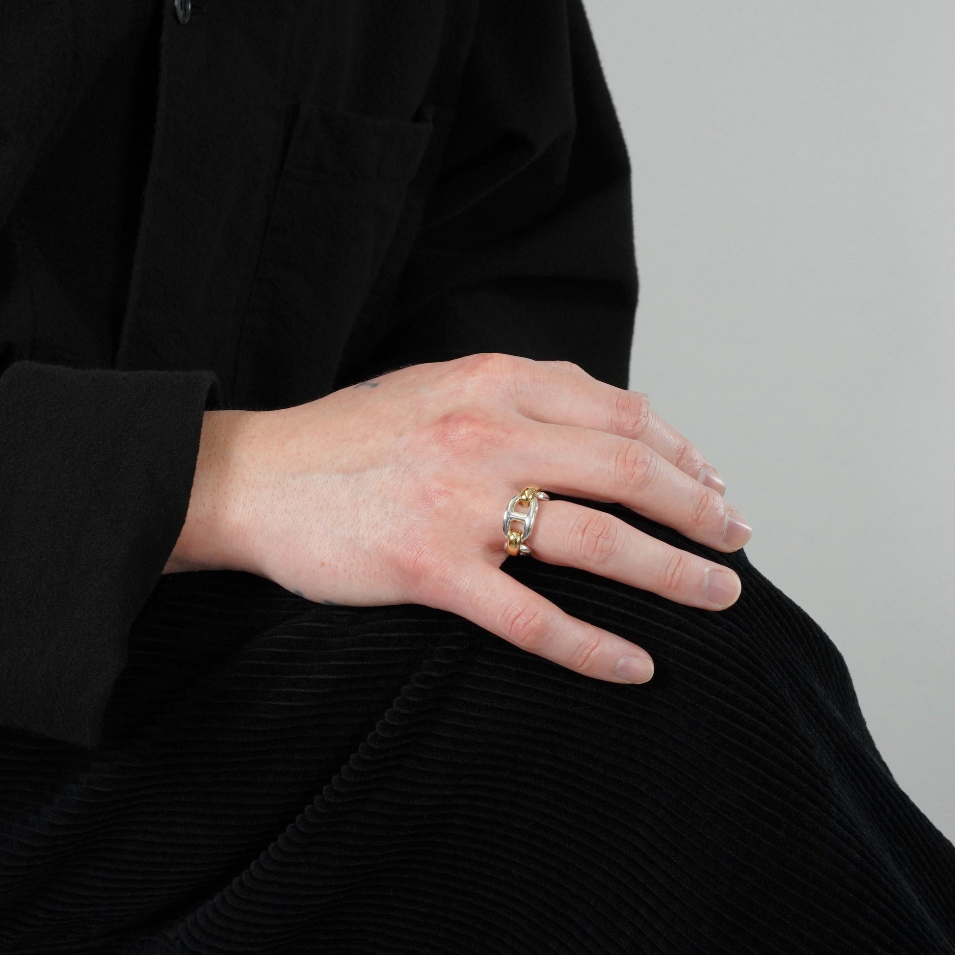 シェーヌダンクルモチーフのコンビリングの中では、しっかりとサイズ感もあり、一つで程よく主張をしてくれるリングです。