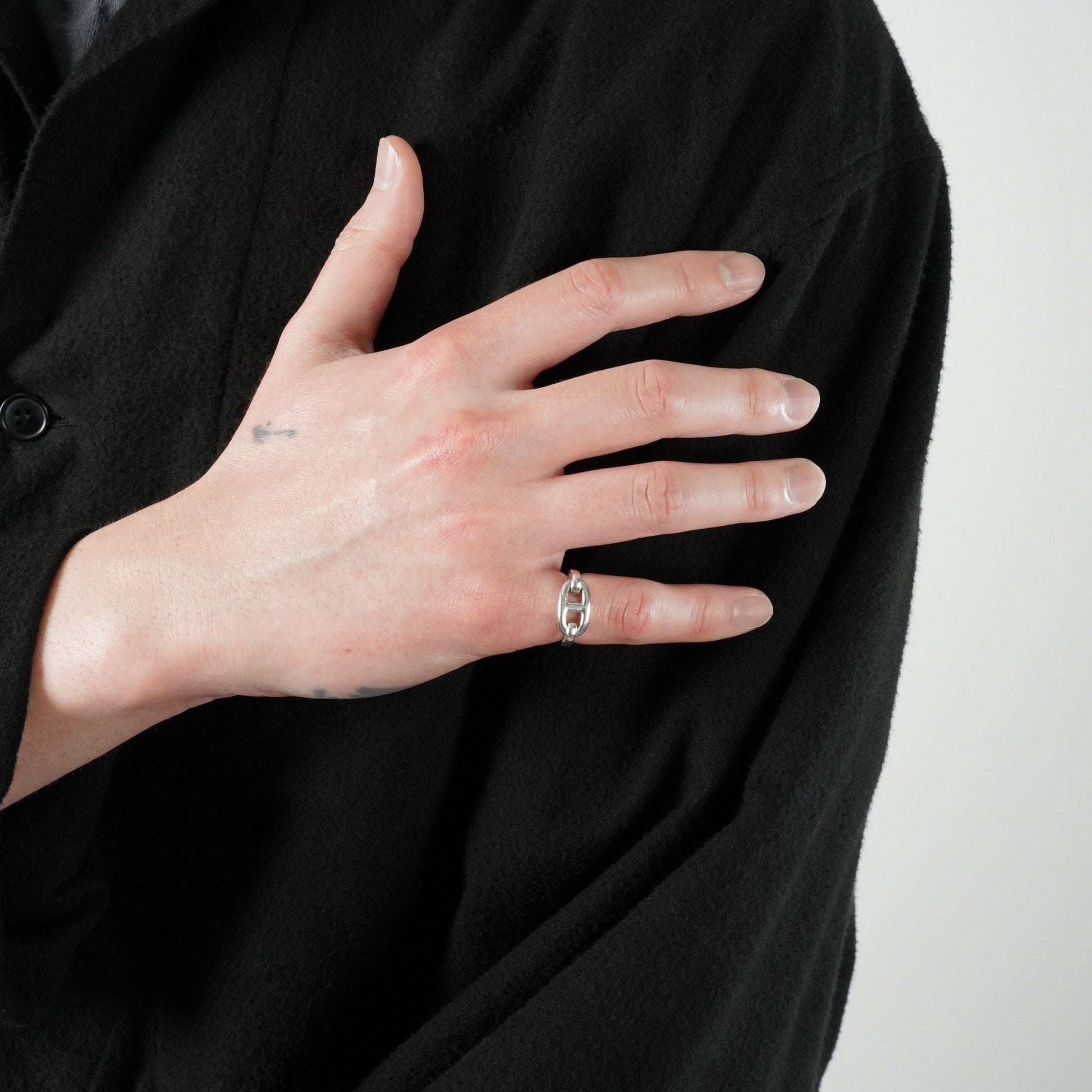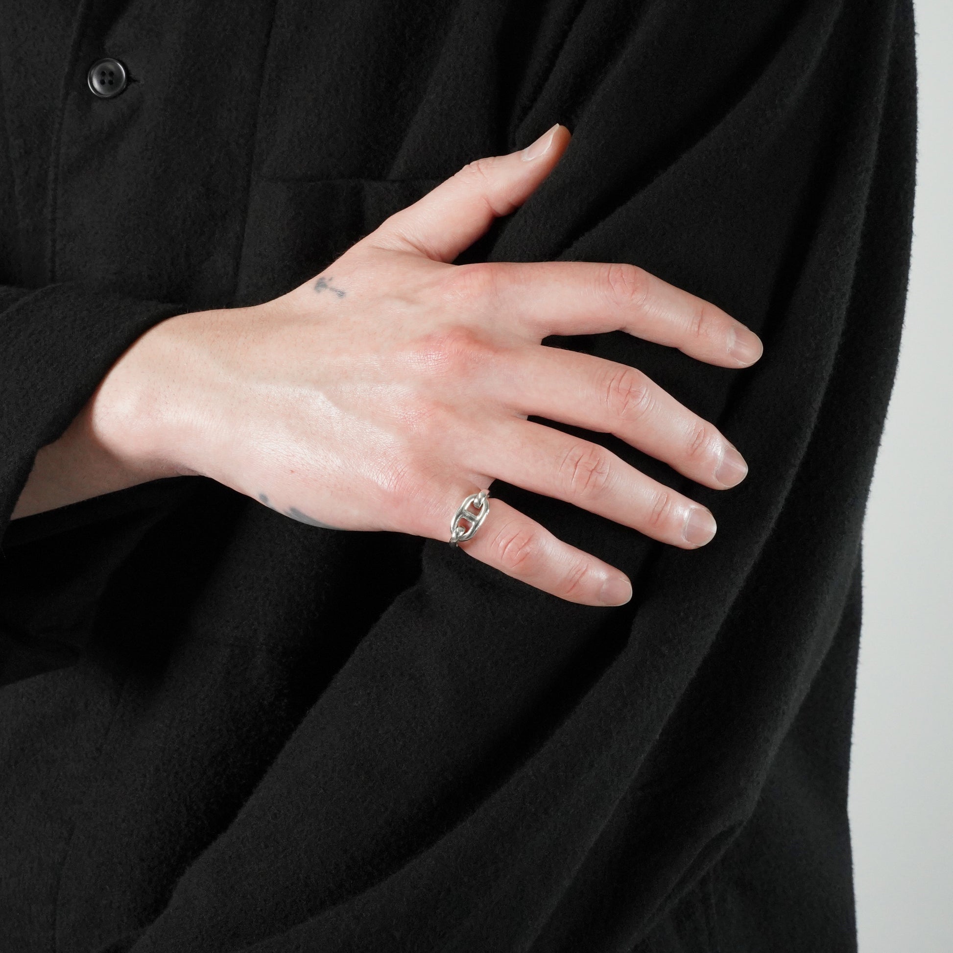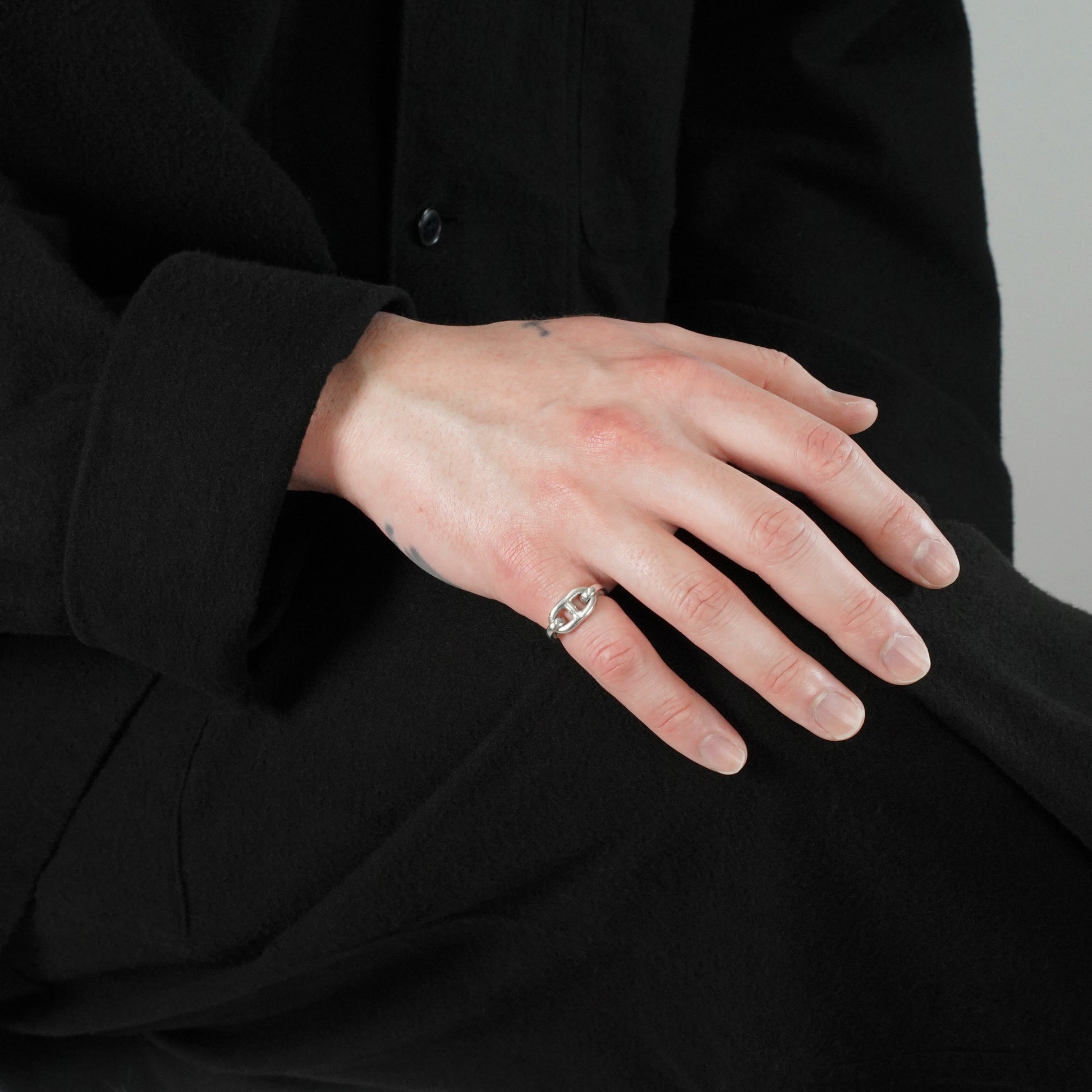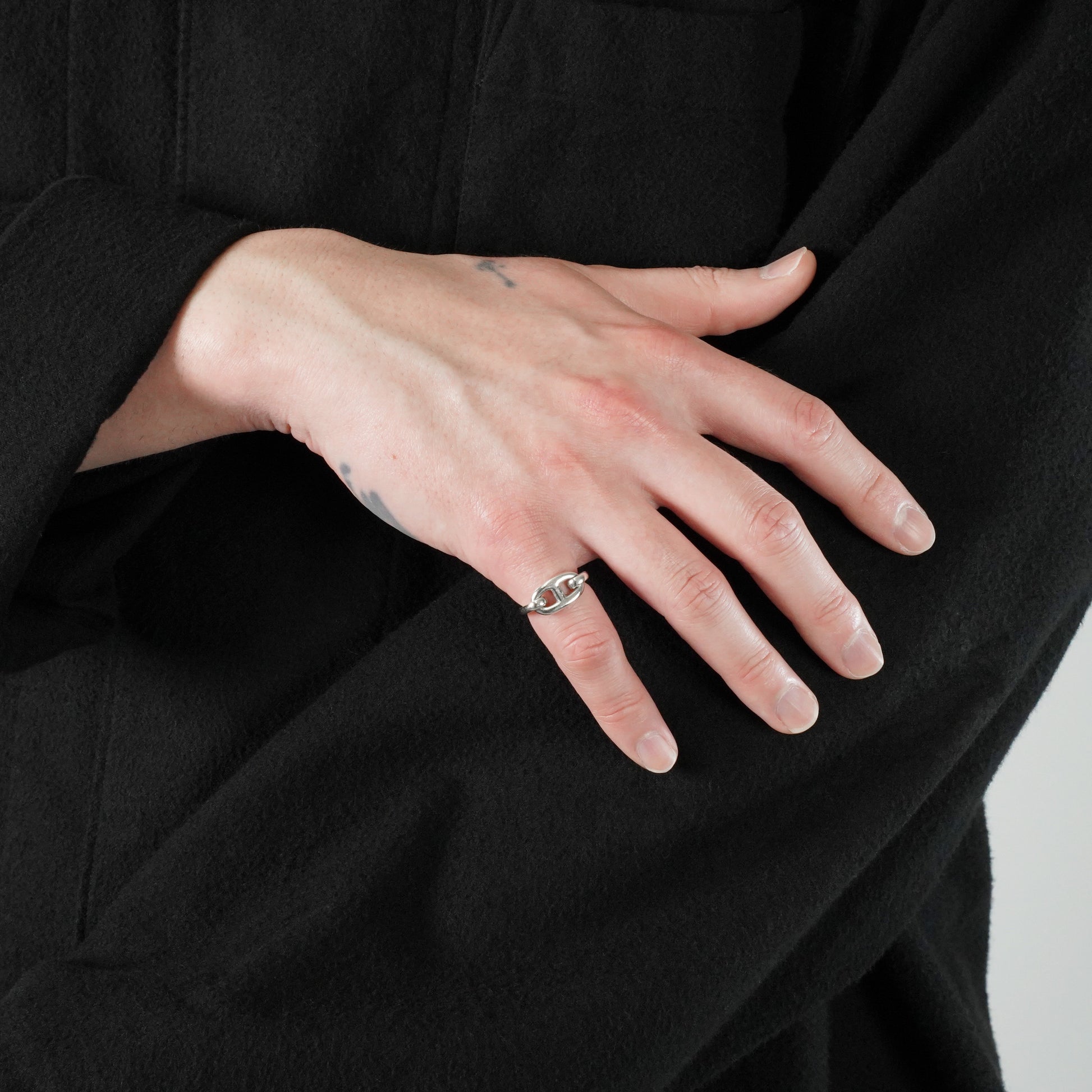 HERMES ヴィンテージリングの中でも特に人気の高い、シェーヌダンクルモチーフのリング。コマは固定されておらず、可動式です。