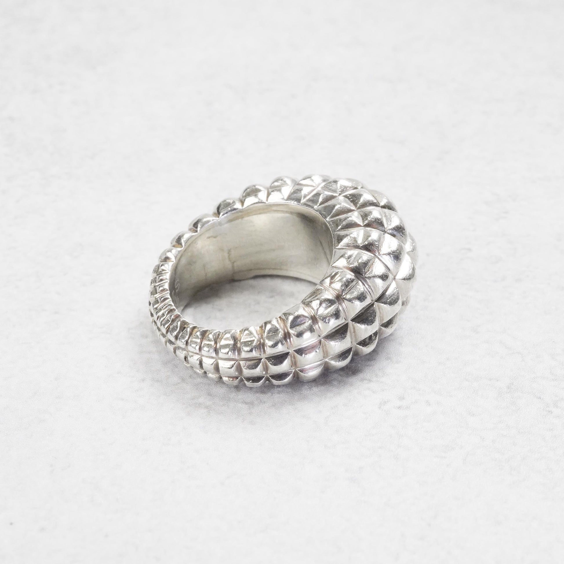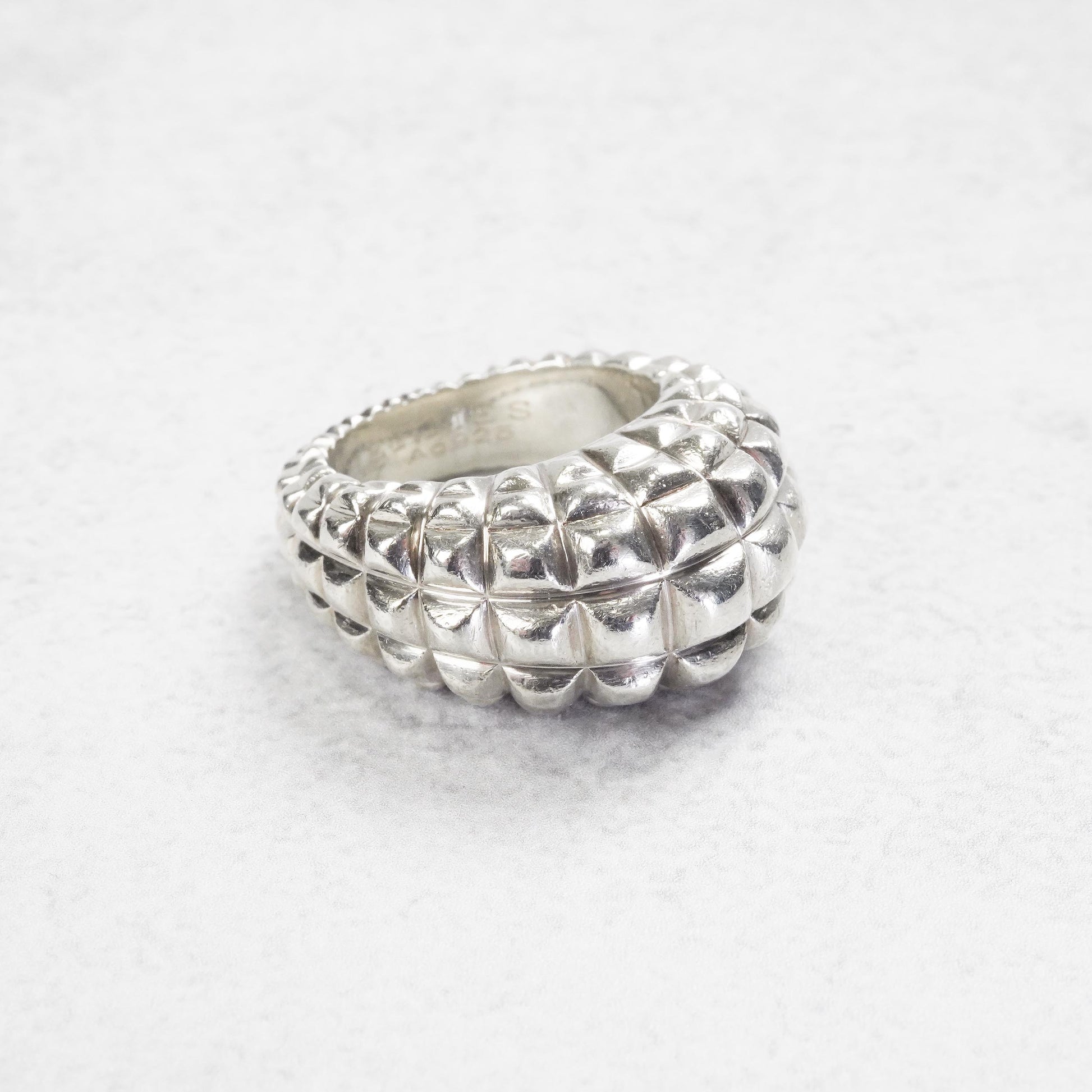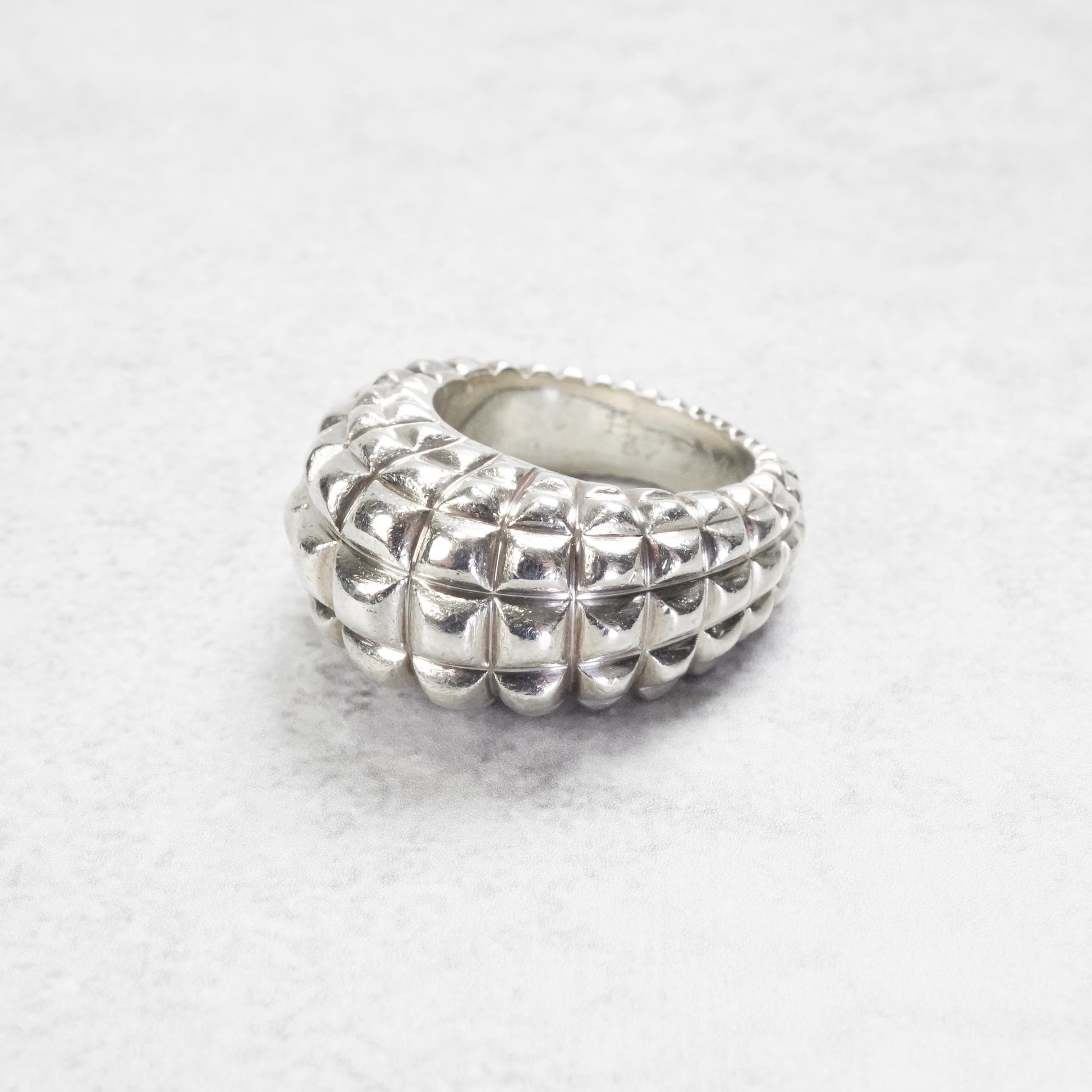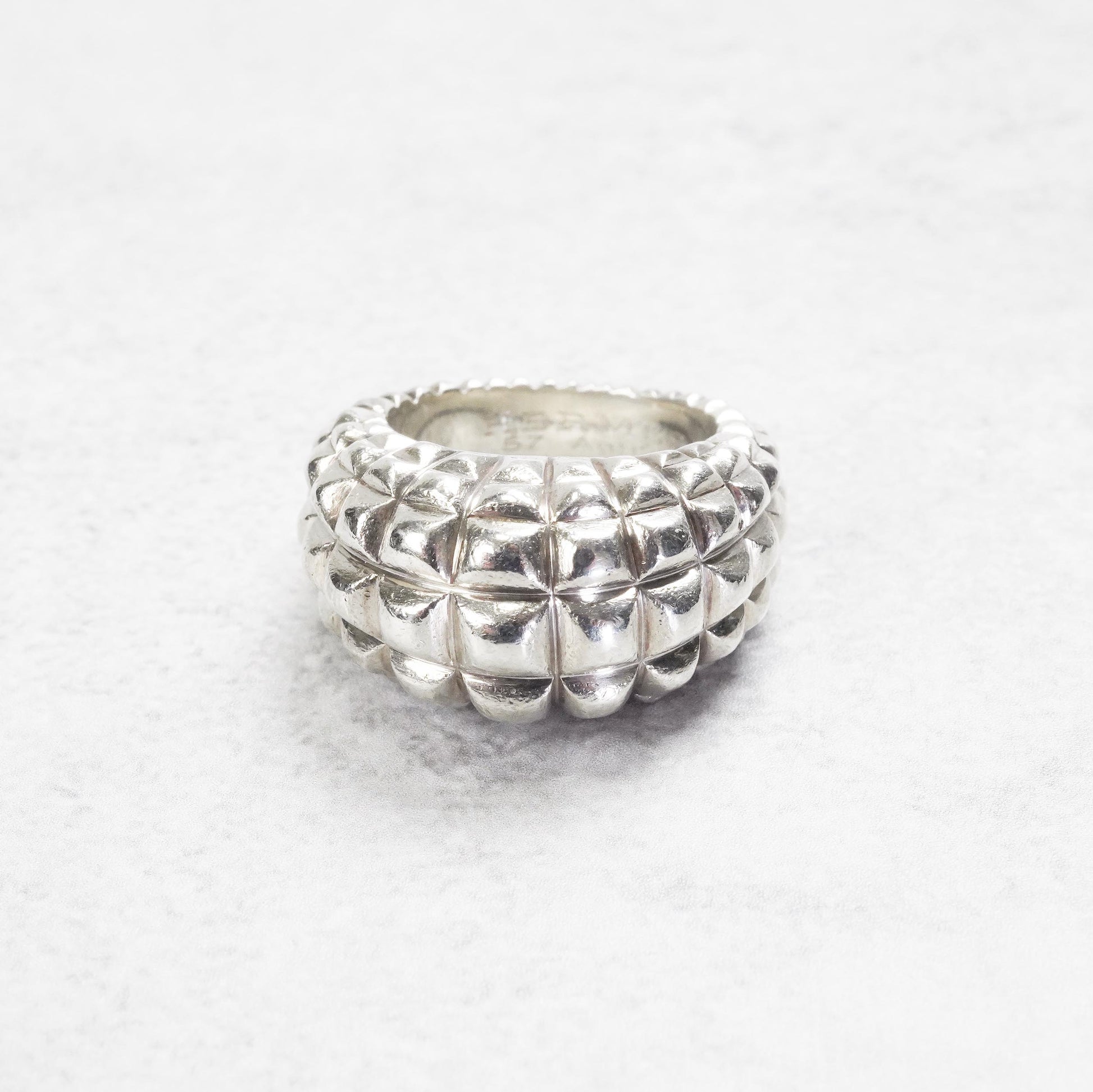 無数のスタッズでミラーボールを表現している、HERMESの遊び心が感じられるリング。圧倒的なボリューム感があり、唯一無二なデザインです。