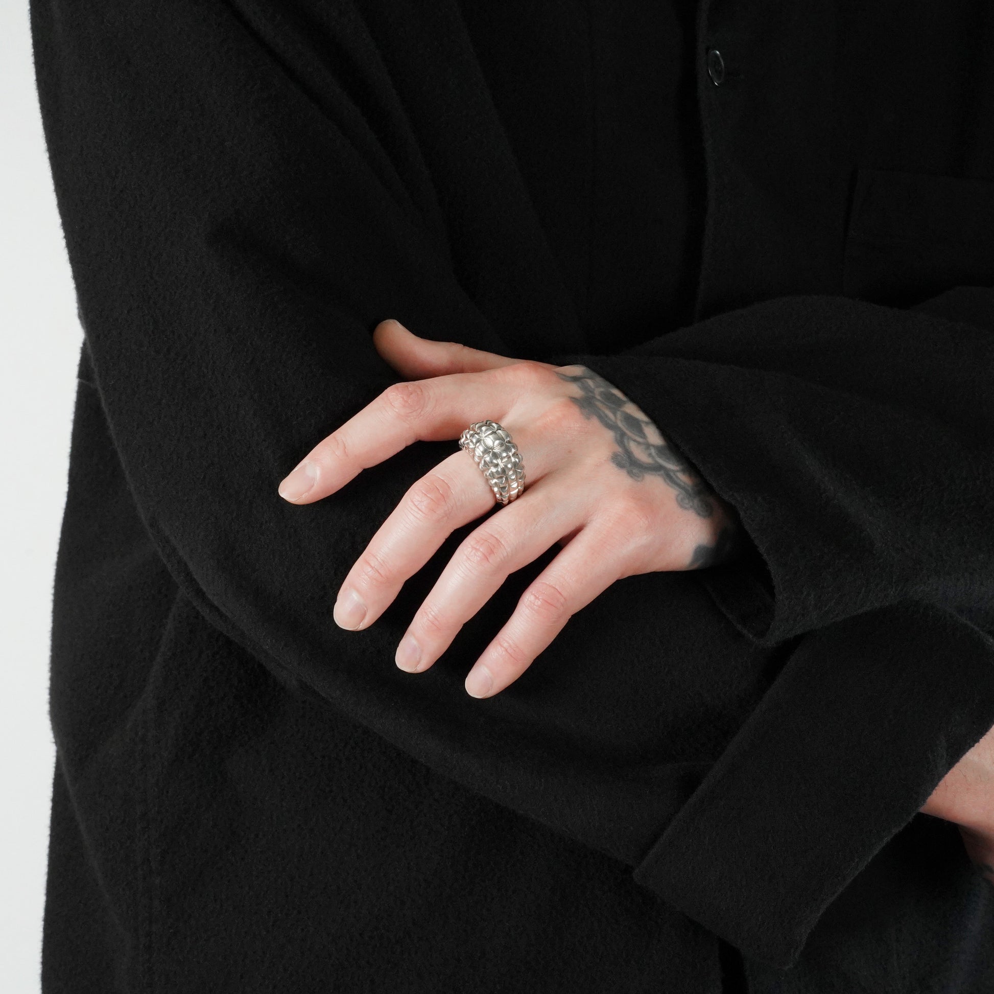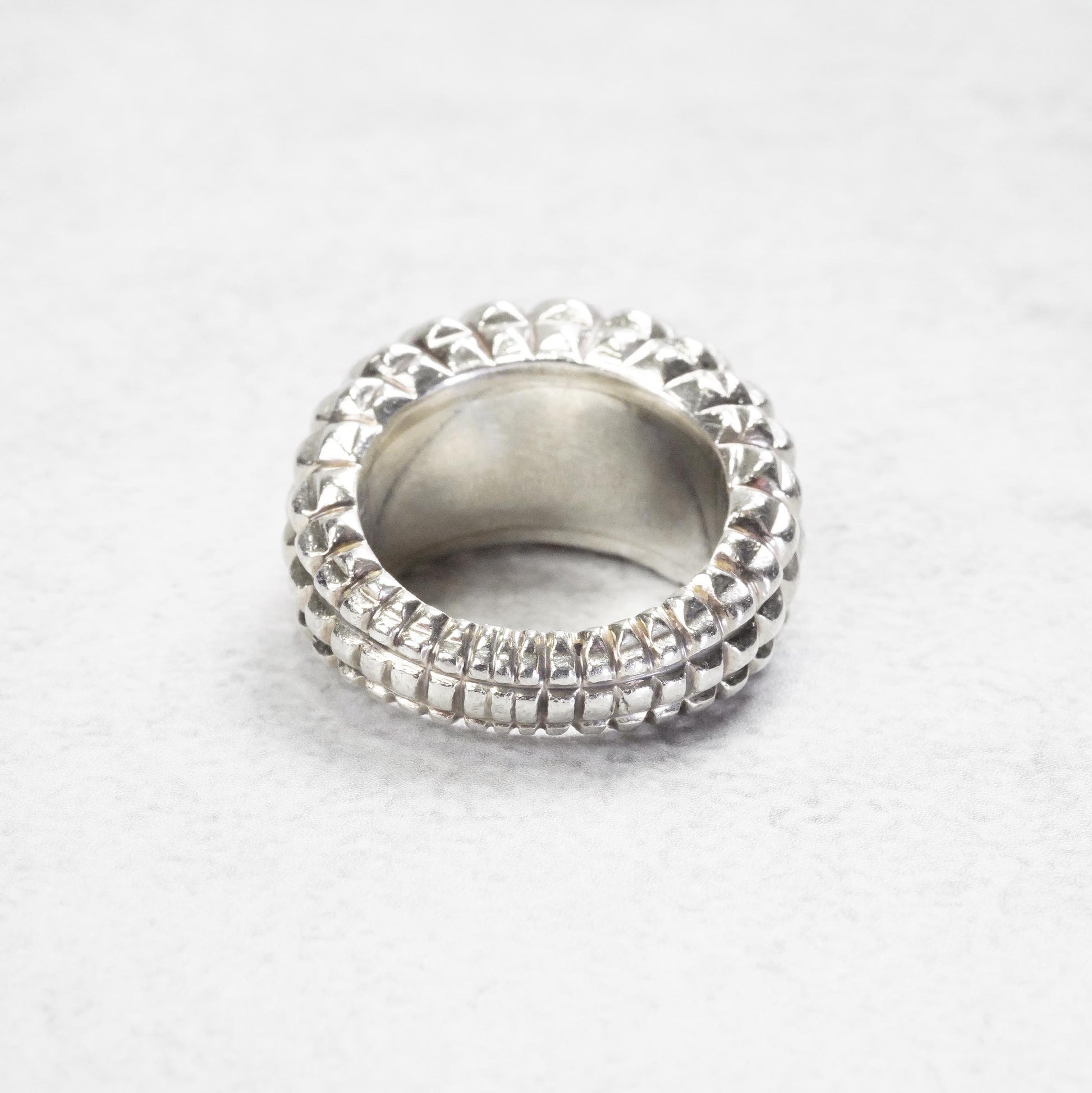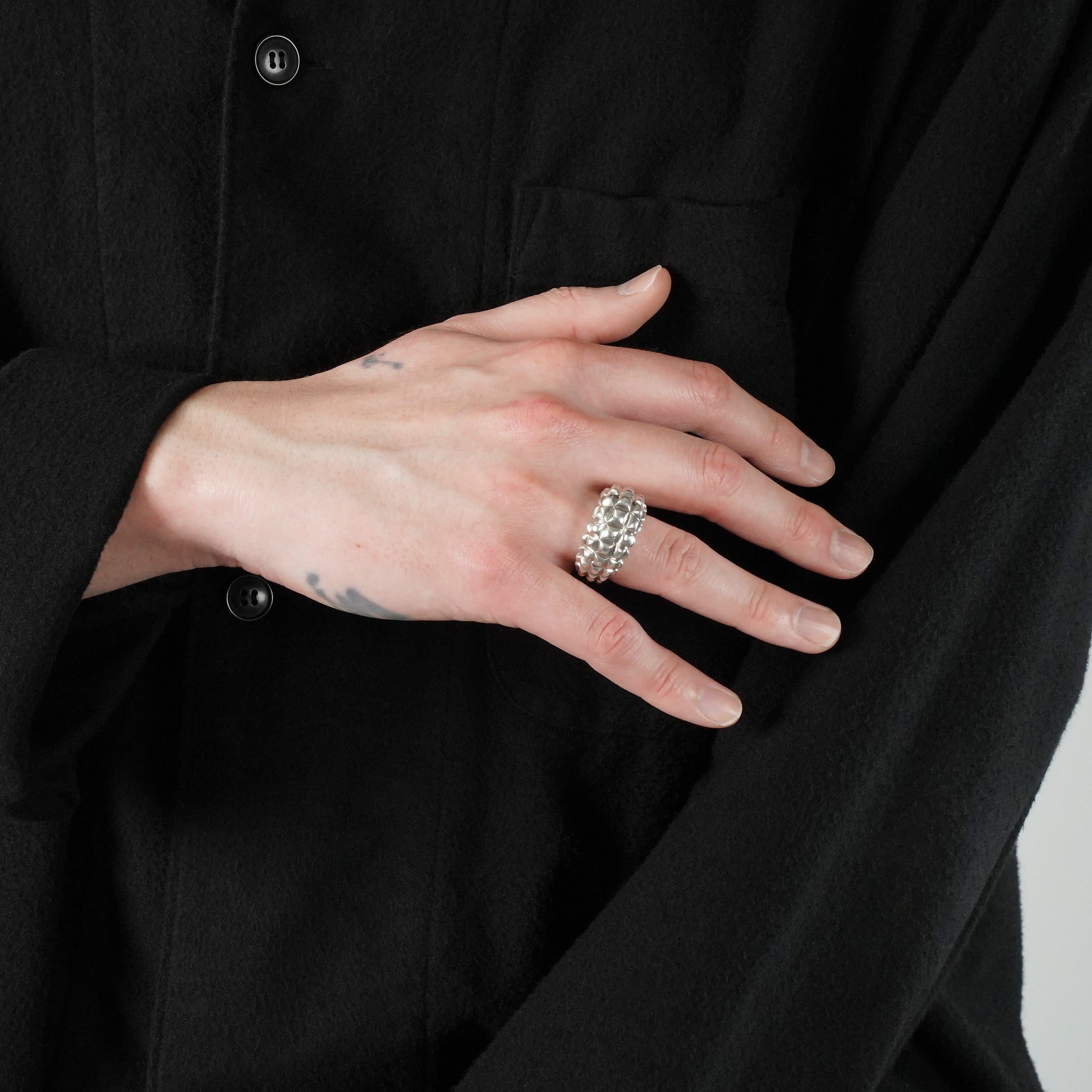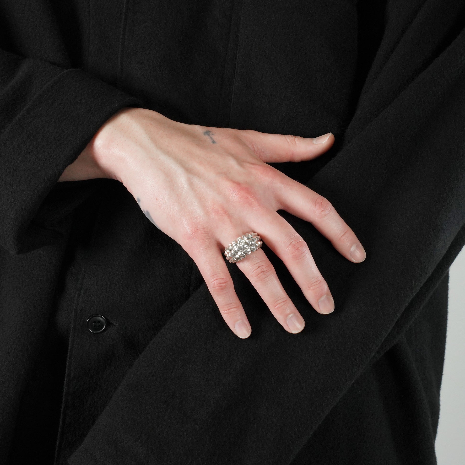 無数のスタッズでミラーボールを表現している、HERMESの遊び心が感じられるリング。圧倒的なボリューム感があり、唯一無二なデザインです。