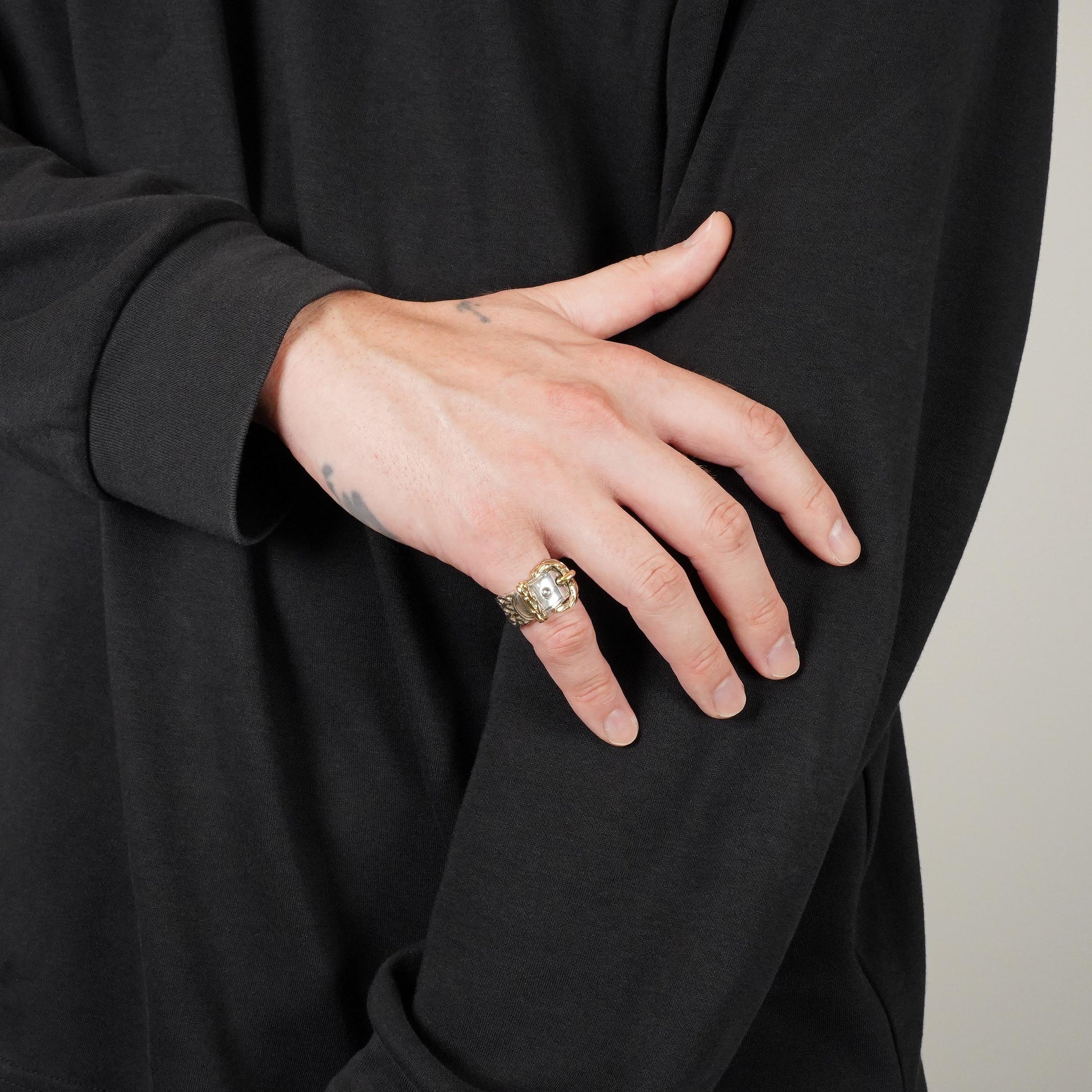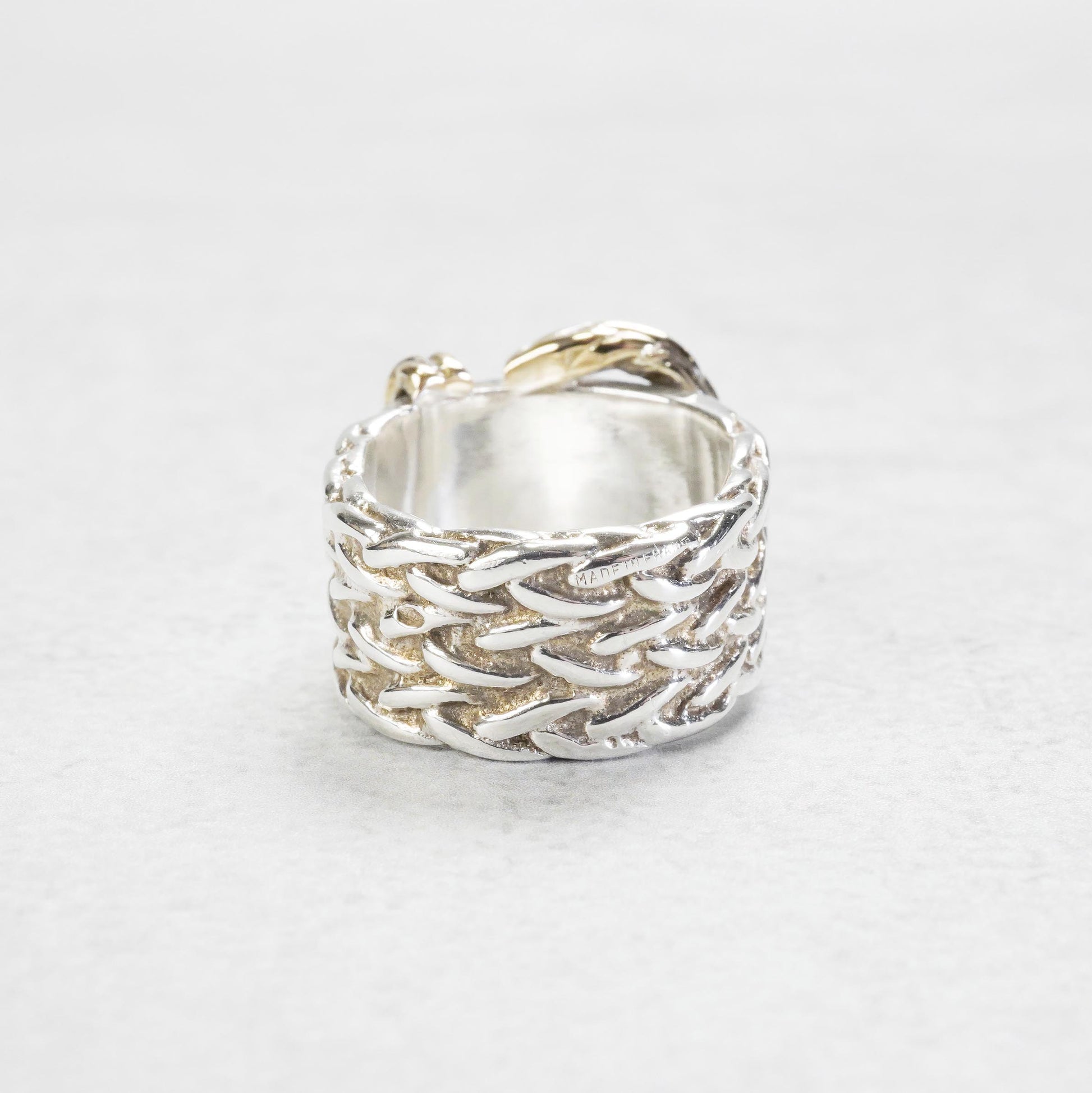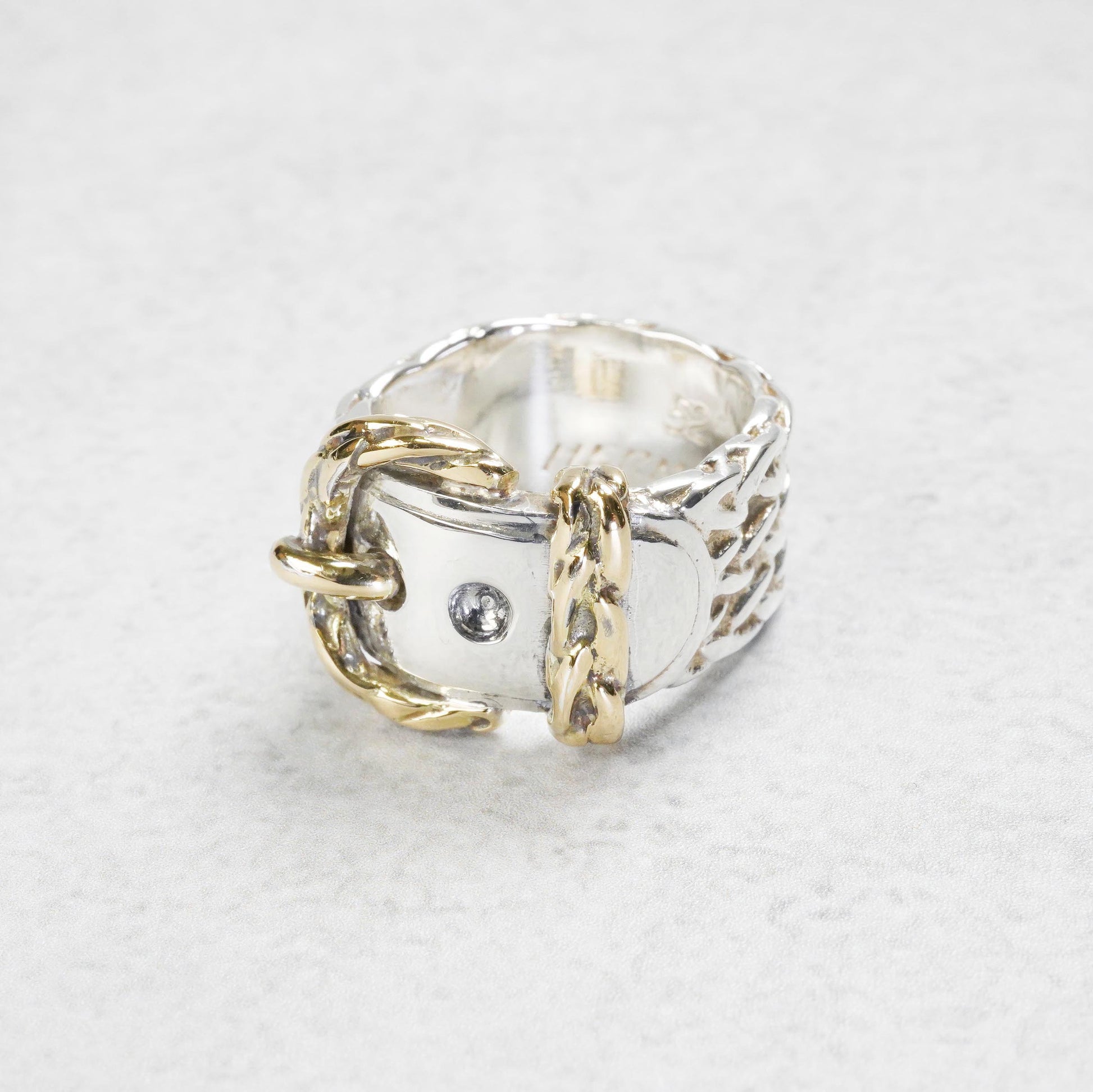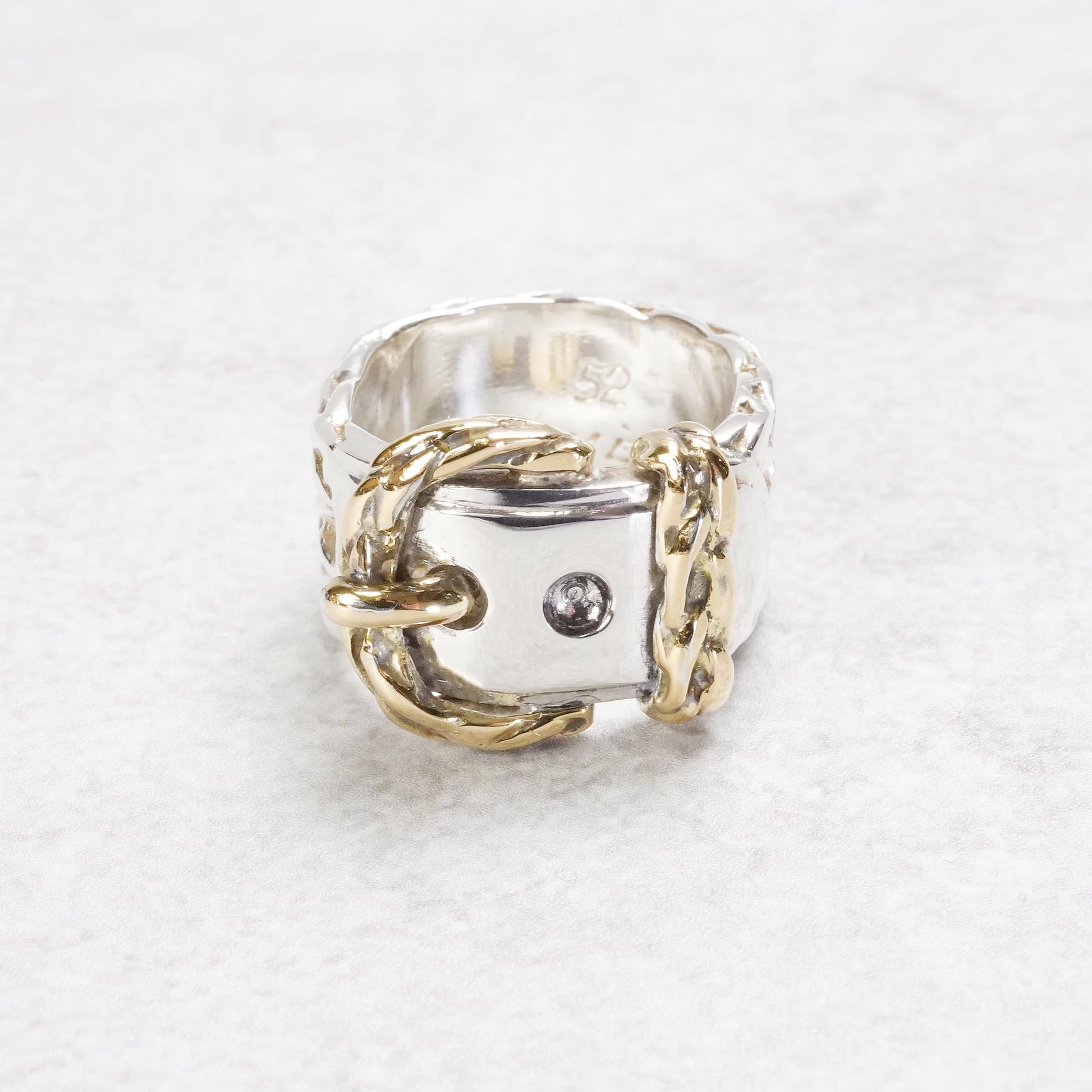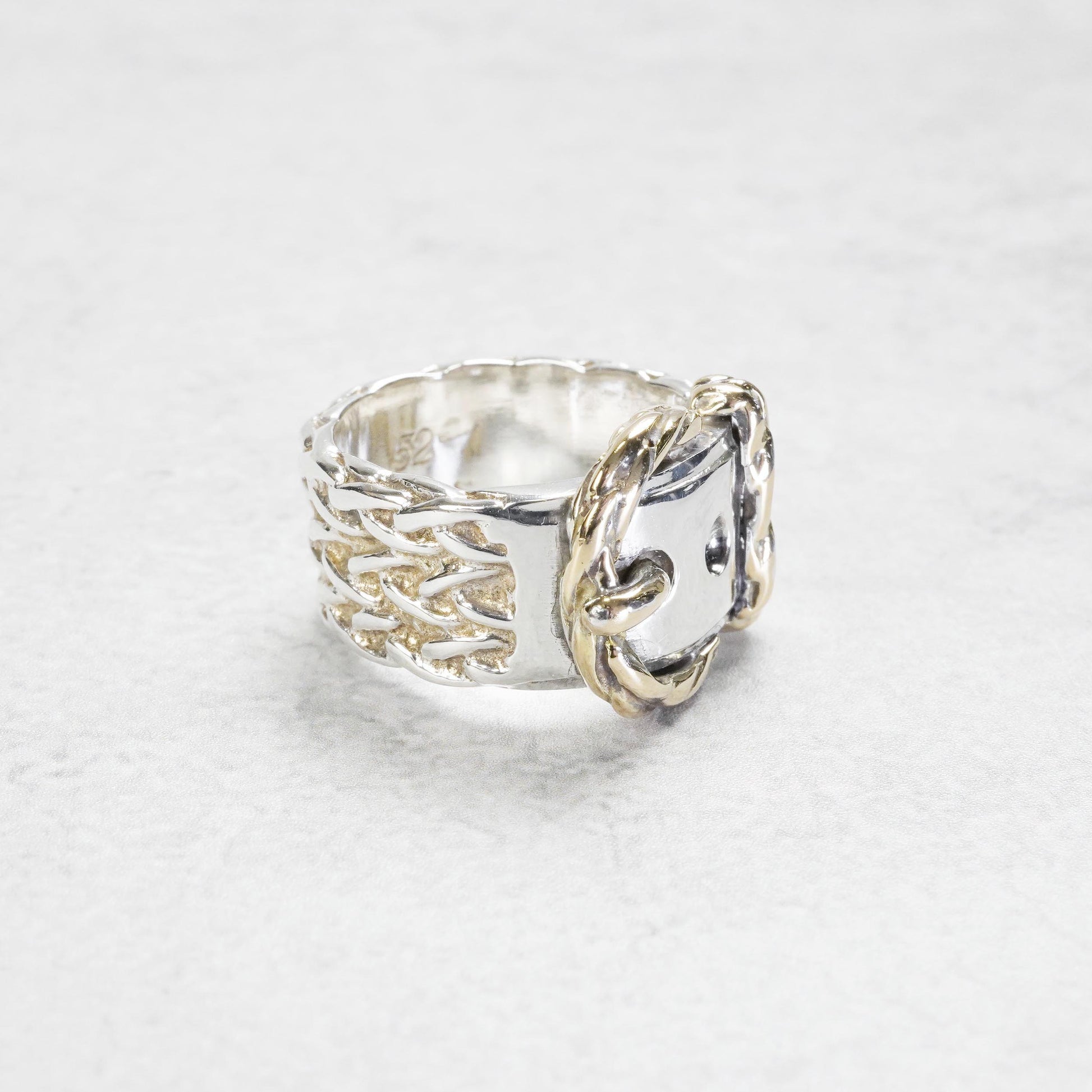 バックルデザインと3連のチェーンモチーフで構成された、エルメスジュエリーらしさのあるリング。ボリューム感もありながら、上品さも持ち合わせているデザインです。