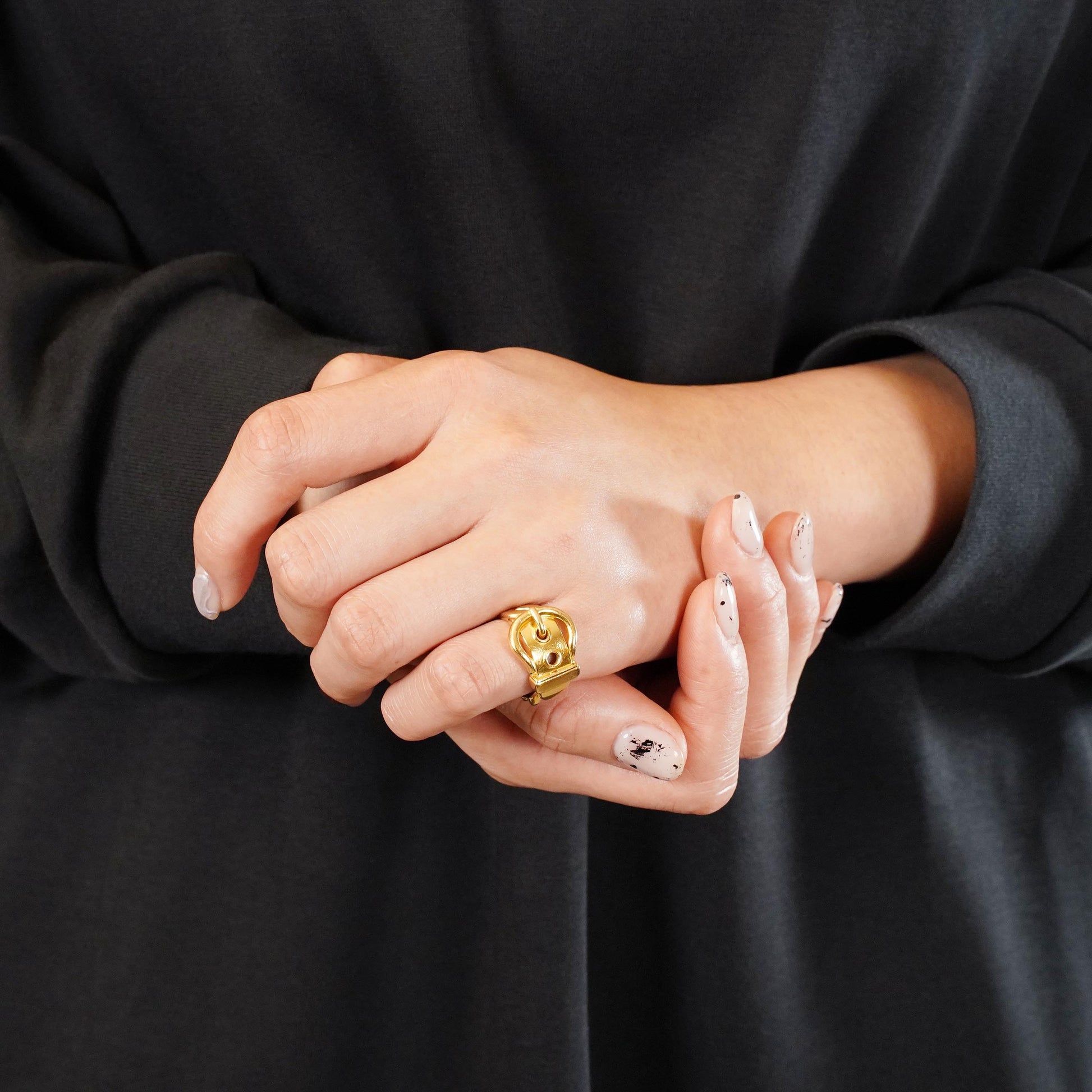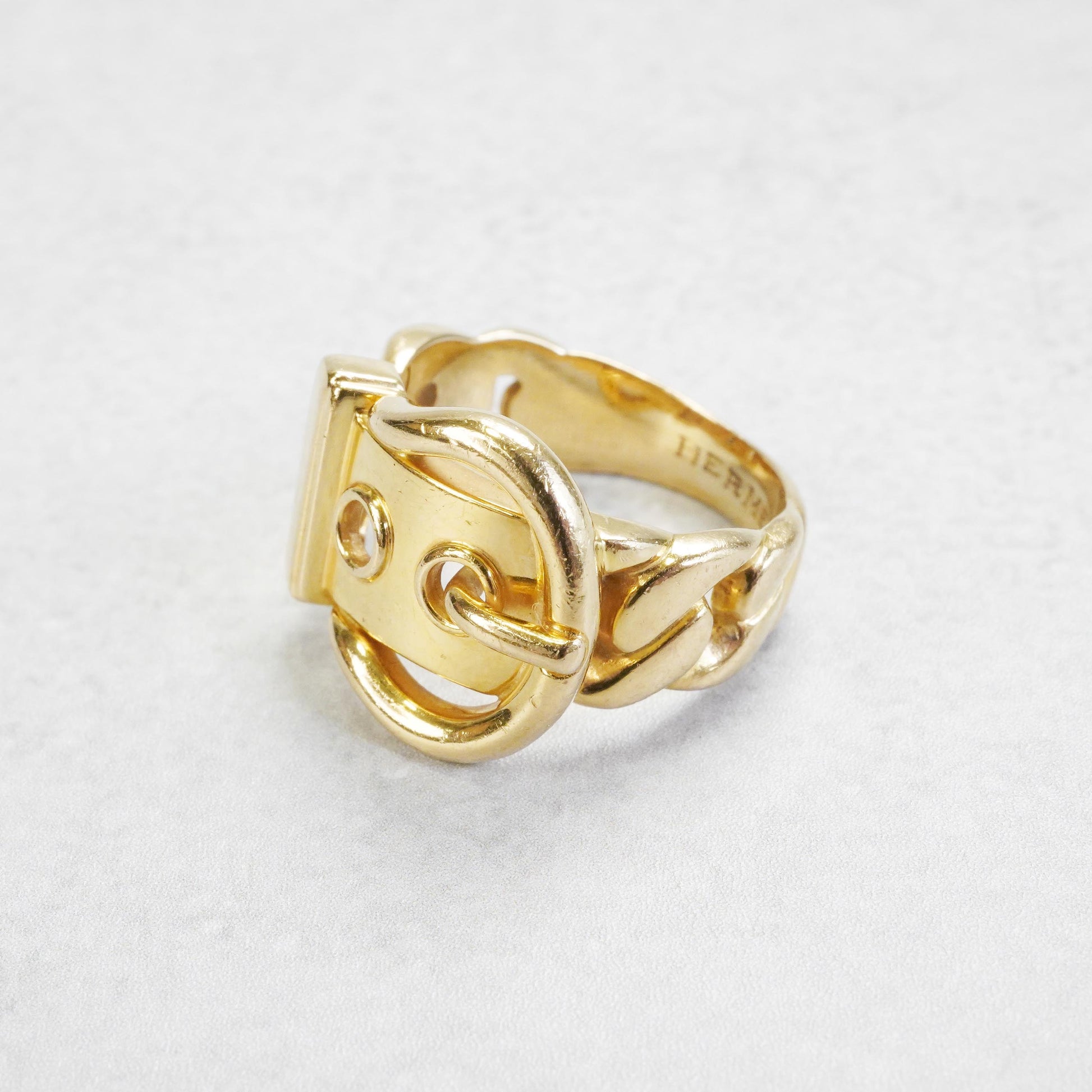 エルメスの代表的なモデル、ブックルセリエモチーフのイエローゴールド製リング。エルメスヴィンテージリングの中でも、ゴールド製のものは非常に流通数が少なく希少です。