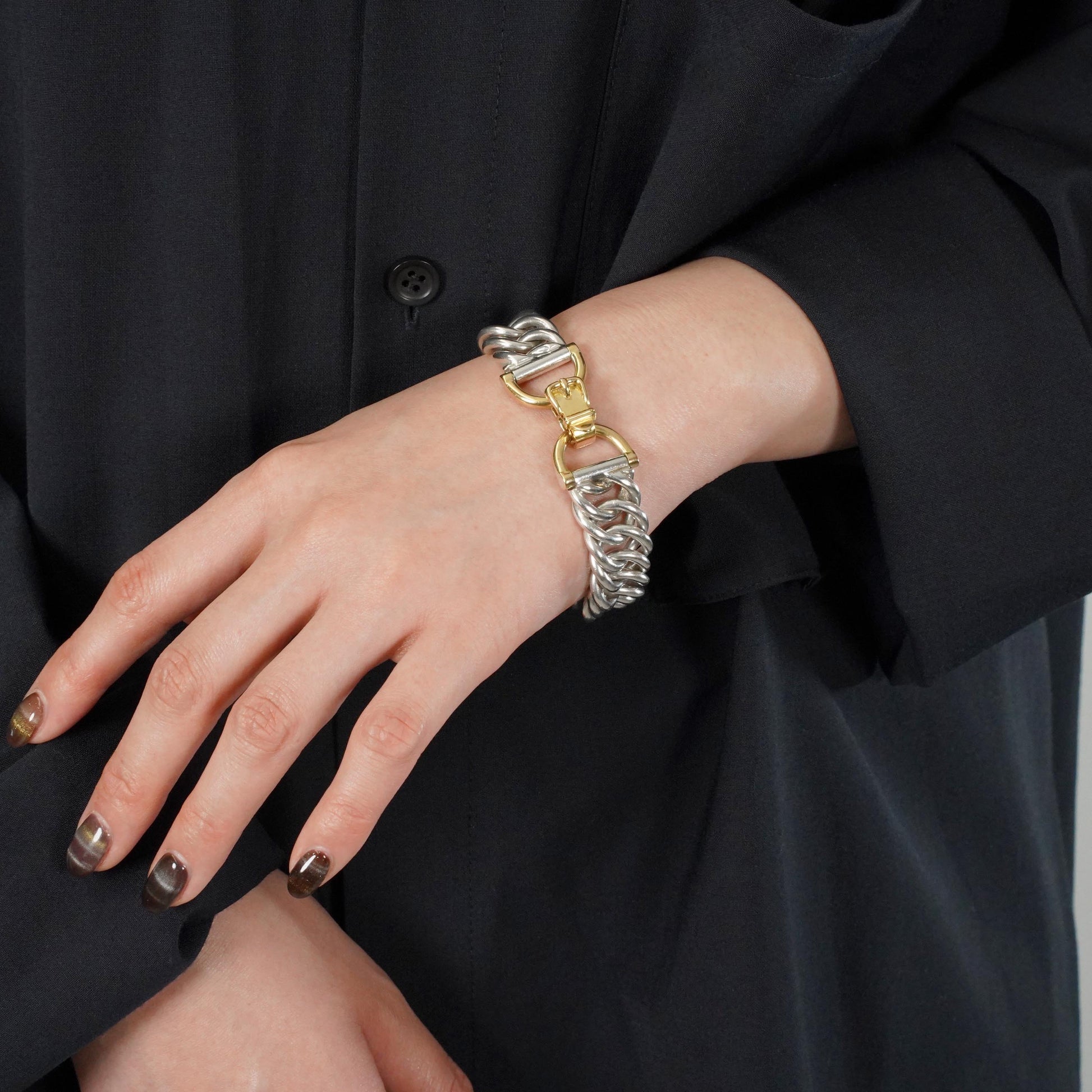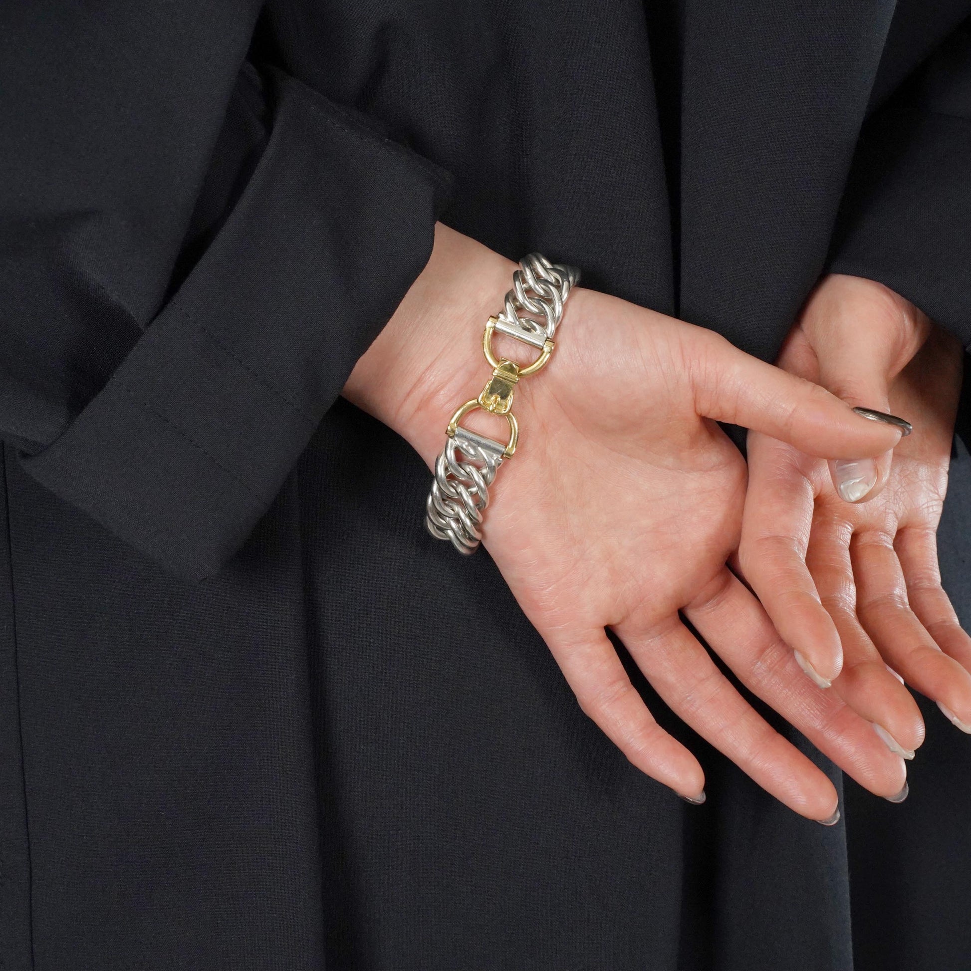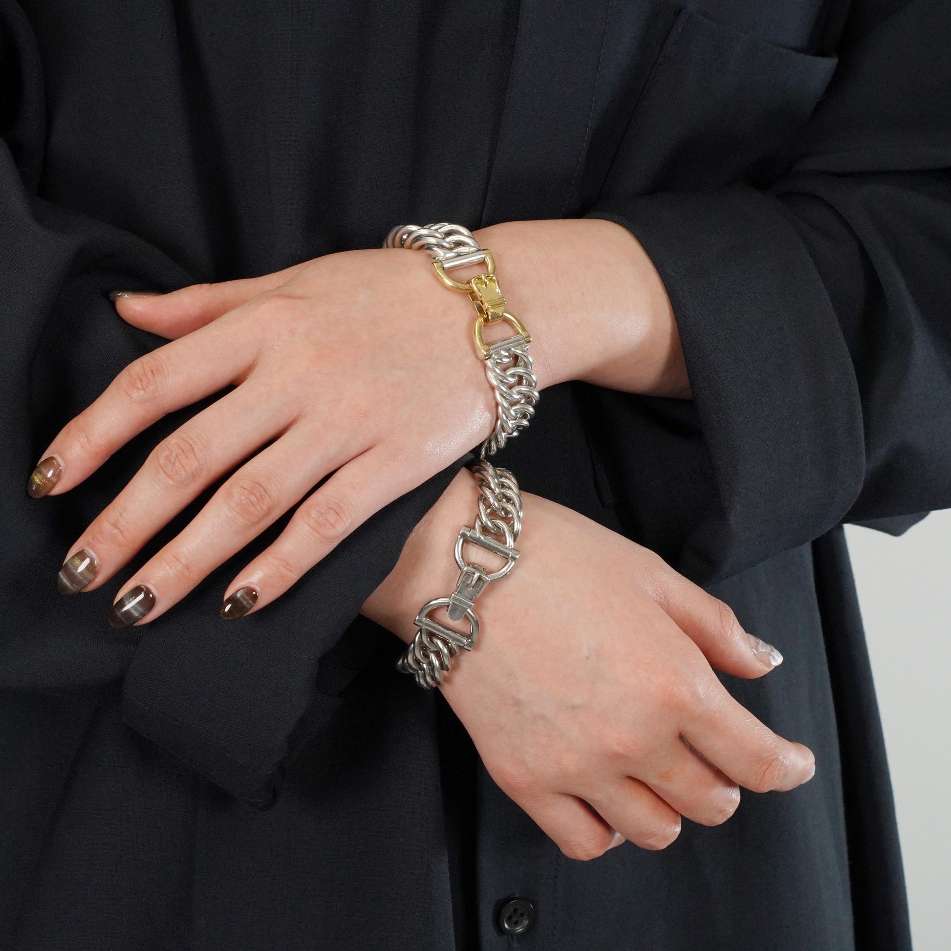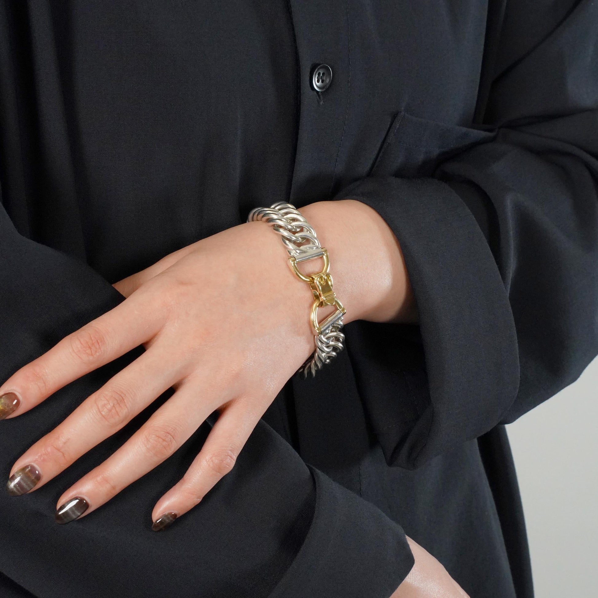 エルメスの特色でもある馬具モチーフの留め具と、繊細なチェーンワークが特長のプティシャン。手を動かした時に鳴るシルバー素材特有の音が、他のモデルに比べて綺麗で上品な点もこのモデルの魅力で、是非直接試してみていただきたいモデルです。