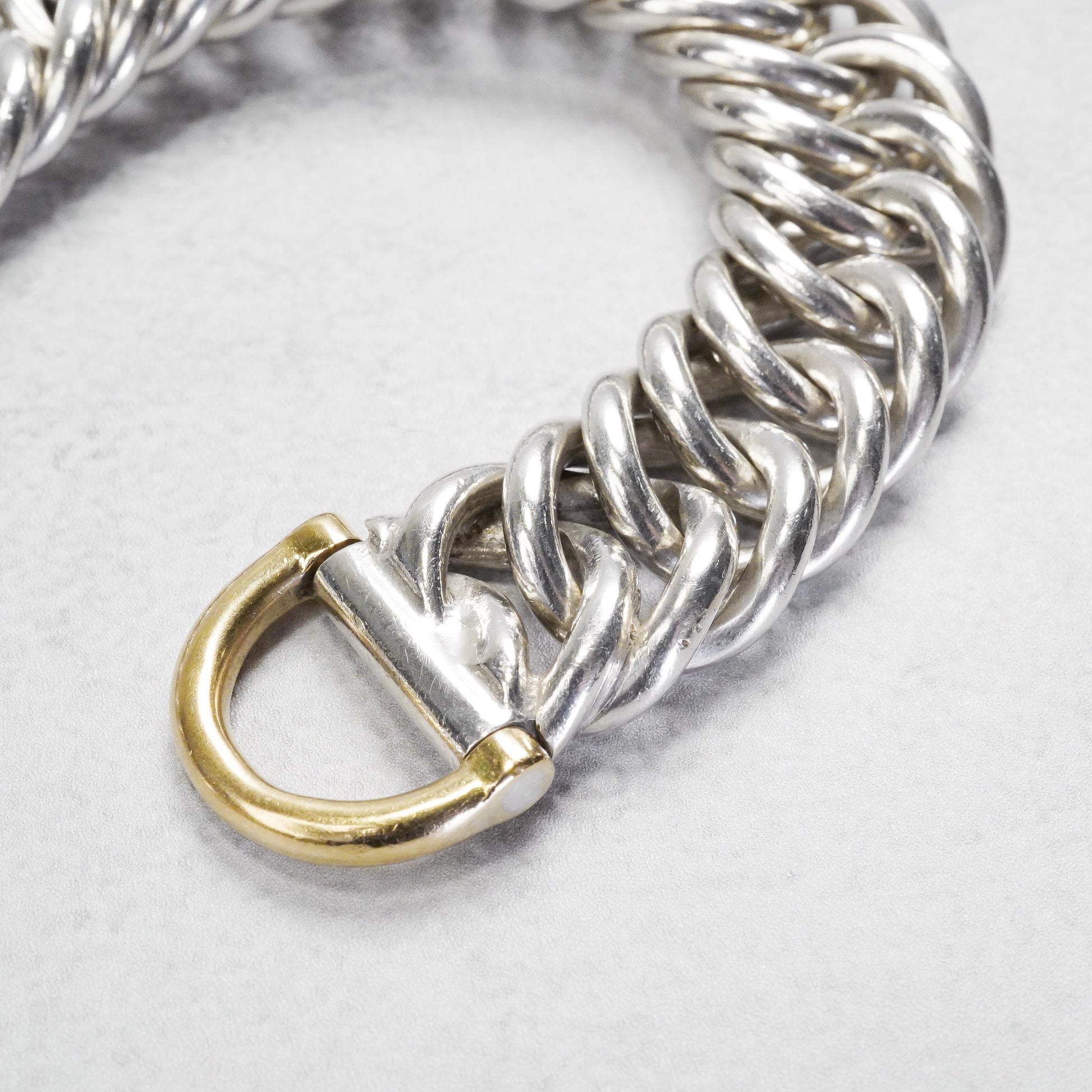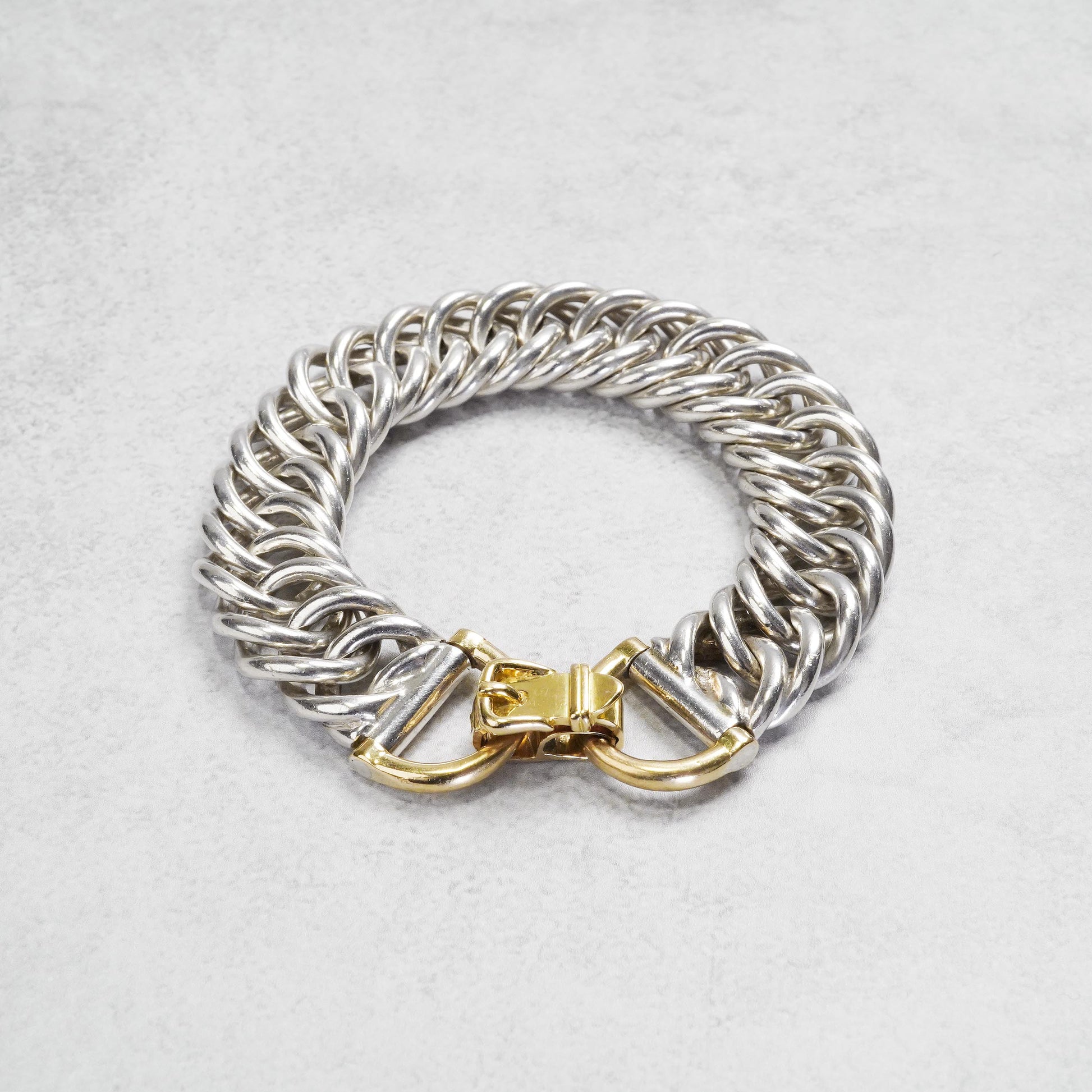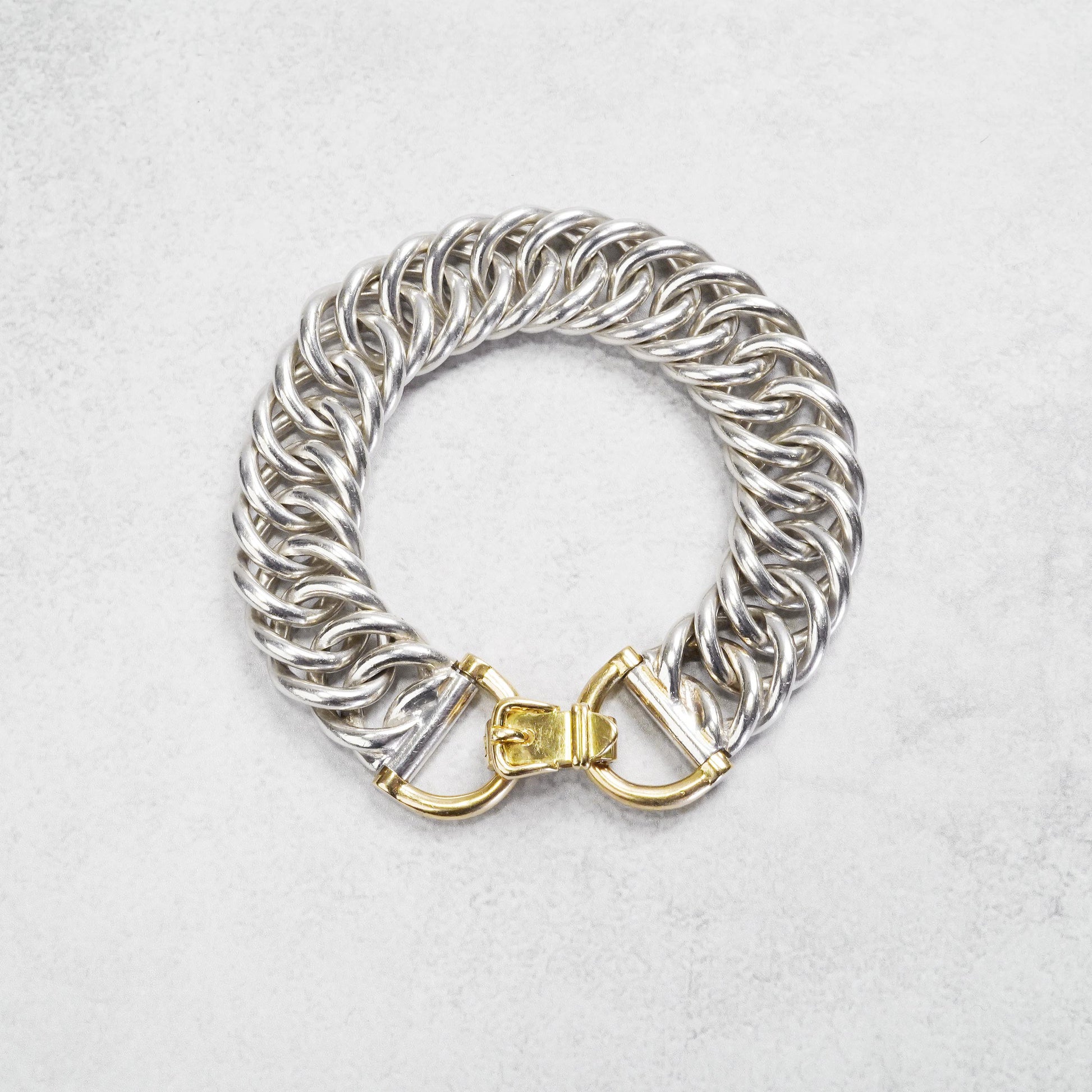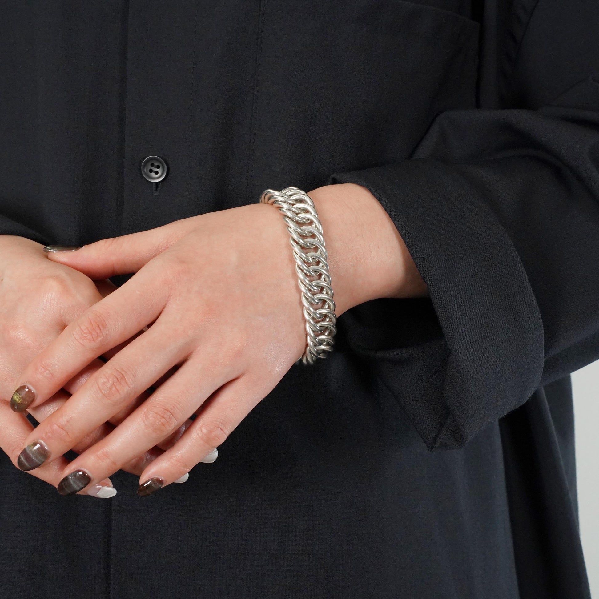 エルメスの特色でもある馬具モチーフの留め具と、繊細なチェーンワークが特長のプティシャン。手を動かした時に鳴るシルバー素材特有の音が、他のモデルに比べて綺麗で上品な点もこのモデルの魅力で、是非直接試してみていただきたいモデルです。