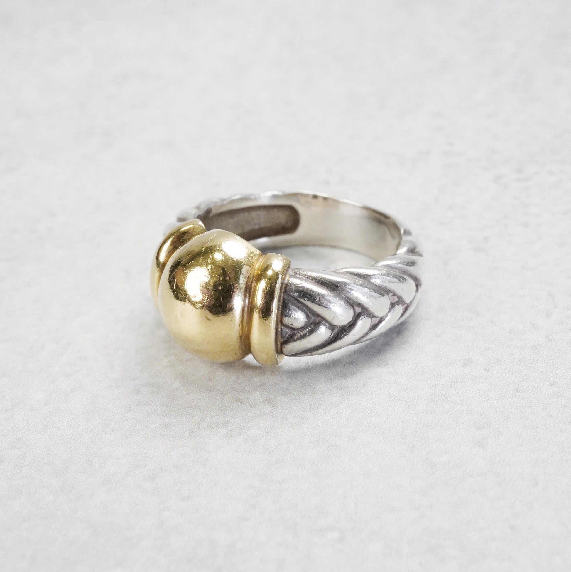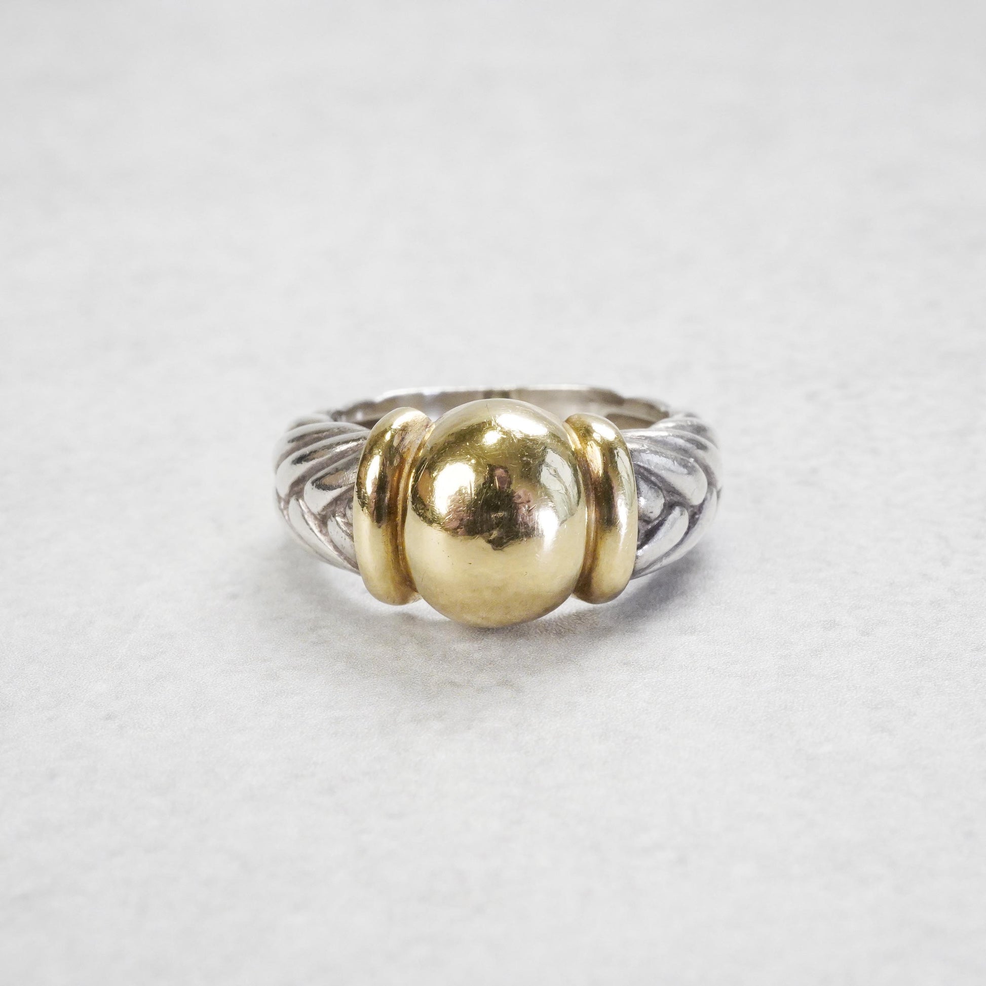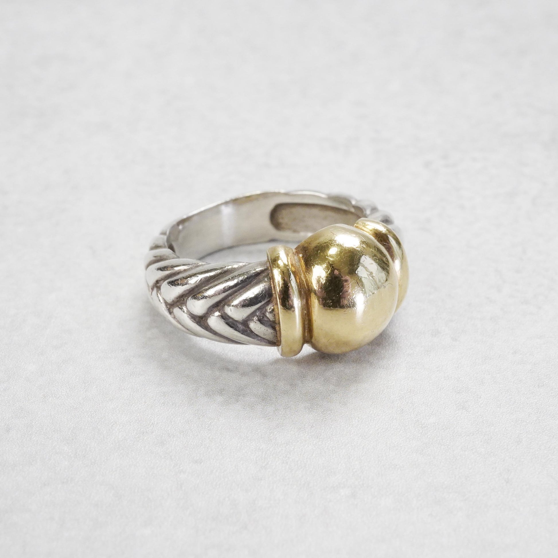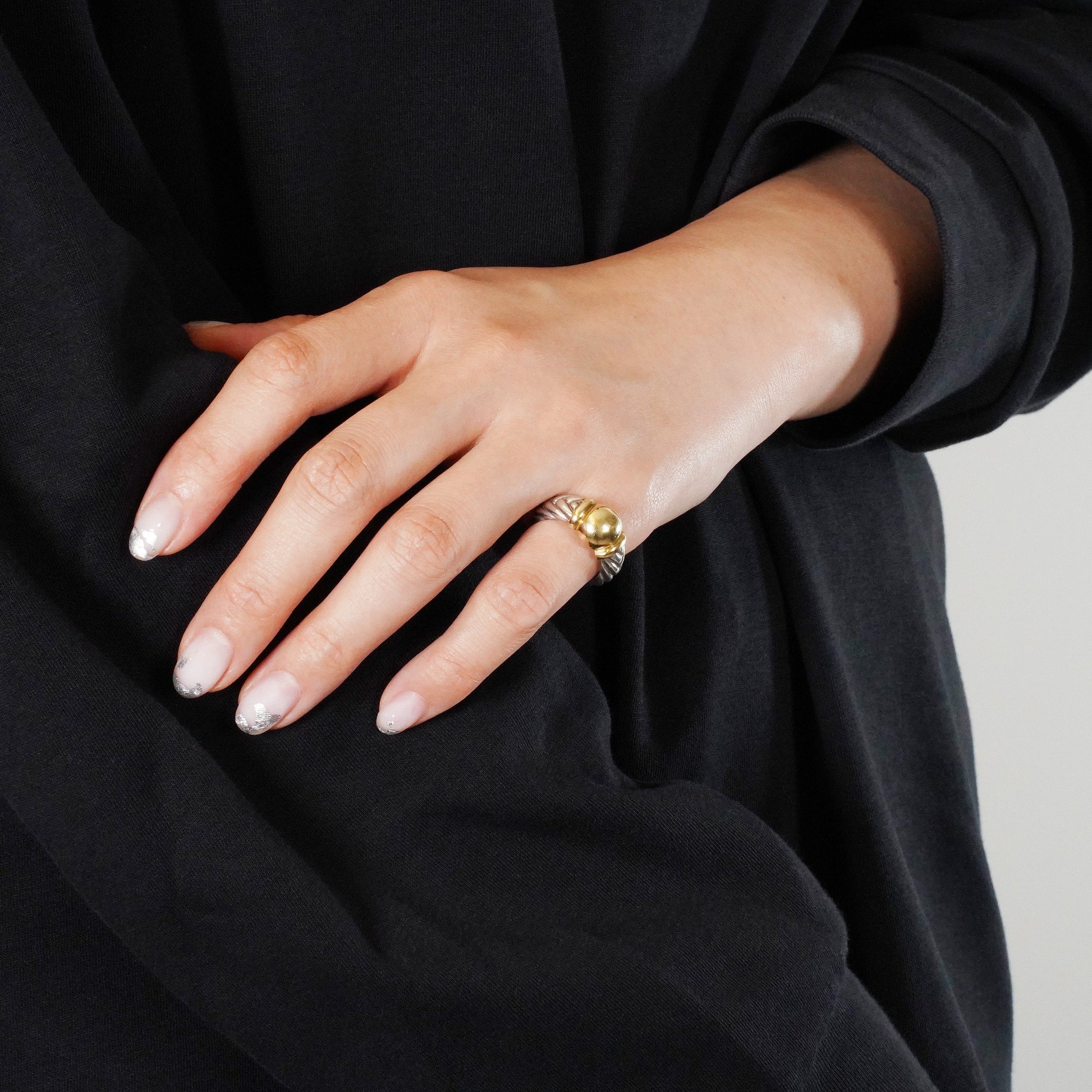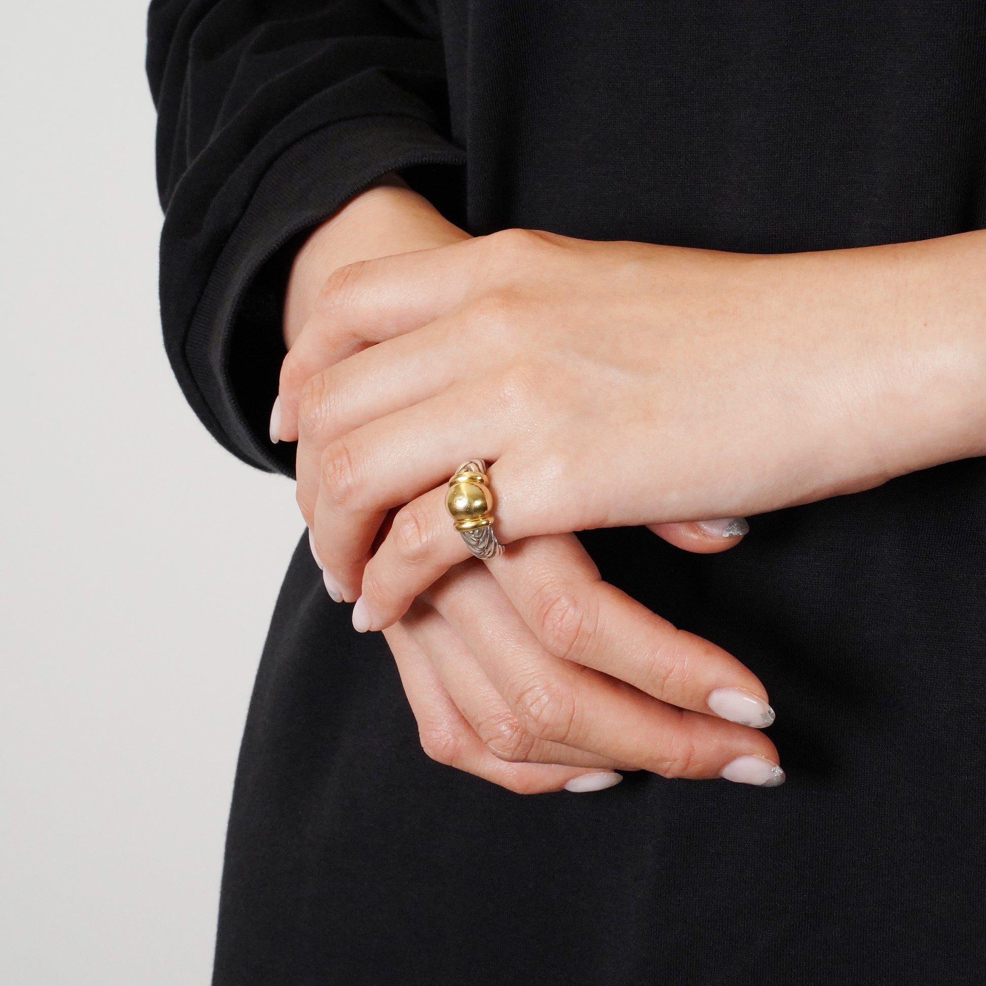 HERMESヴィンテージジュエリーらしさのあるデザインで、クラシカルな雰囲気と上品さを兼ね備えたリングです。イエローゴールドとのコンビモデルで、1990年代頃の作品。