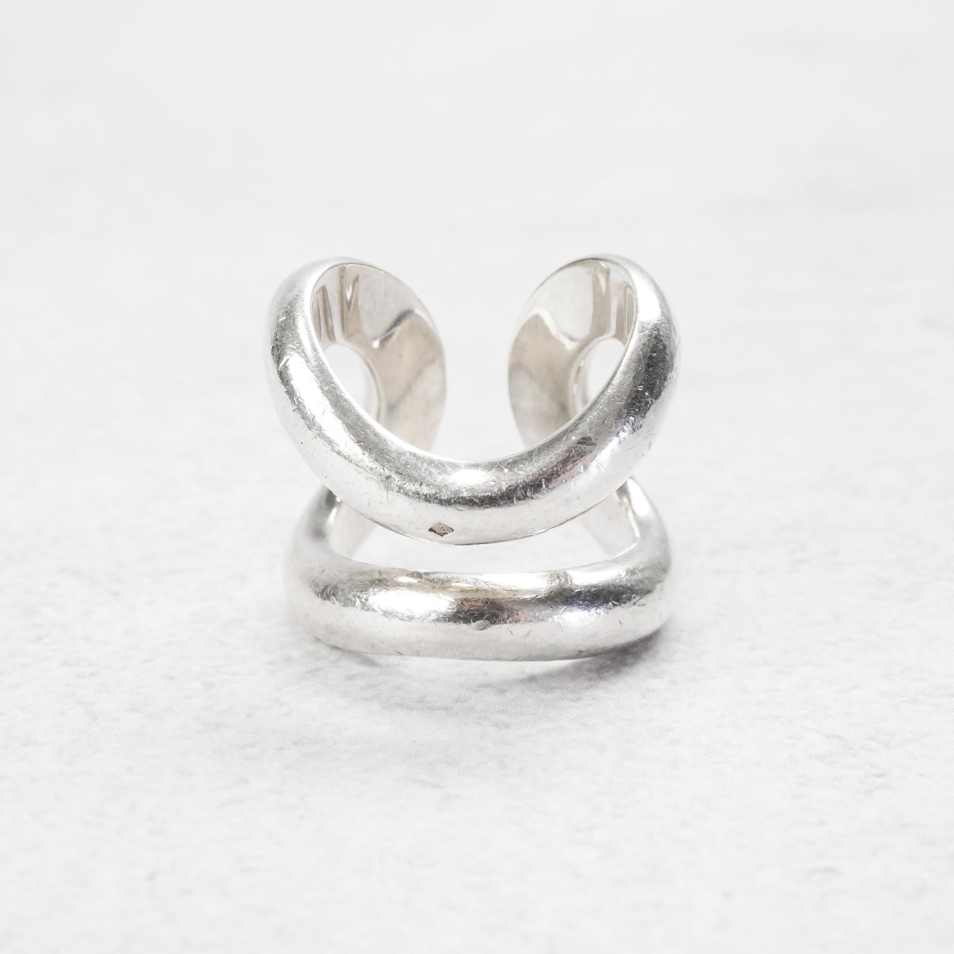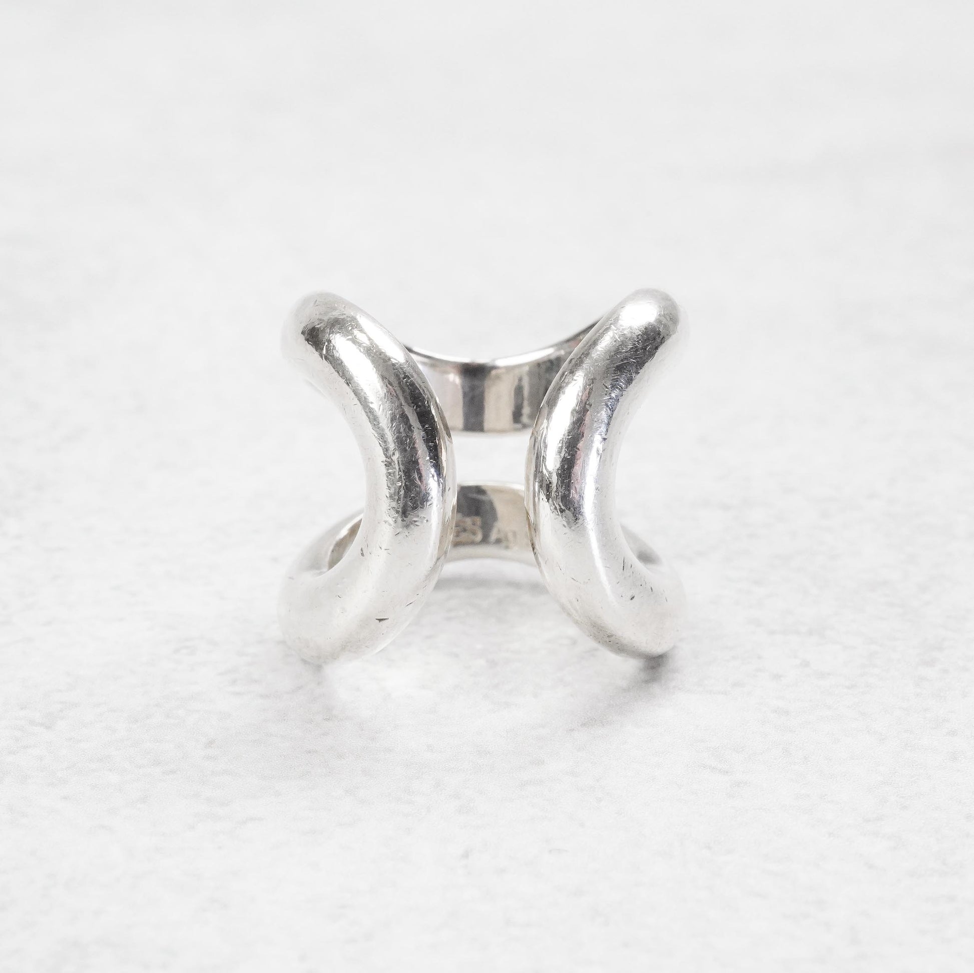 リマはエルメスのモデルの中でも近年特に人気なシリーズ。GMサイズのリングはモダンさと、しっかりとしたボリューム感が特長です。リングのラインの太さが同じなので、オスモズとの合わせて着用するのにも非常にお薦めなモデルです。